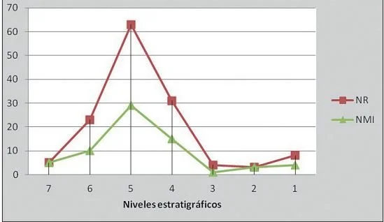 Figura 11.6. Relación de NR y NMI por estratos en el Abrigo de Benzú