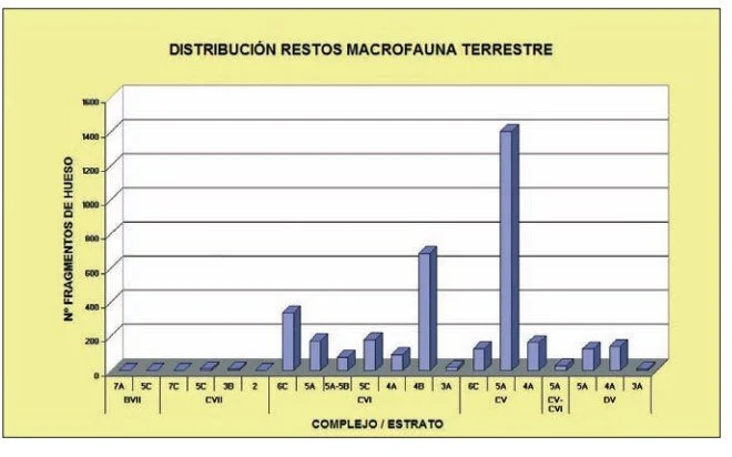 Figura 16.6. Histograma con la distribución de restos de macrofauna terrestre