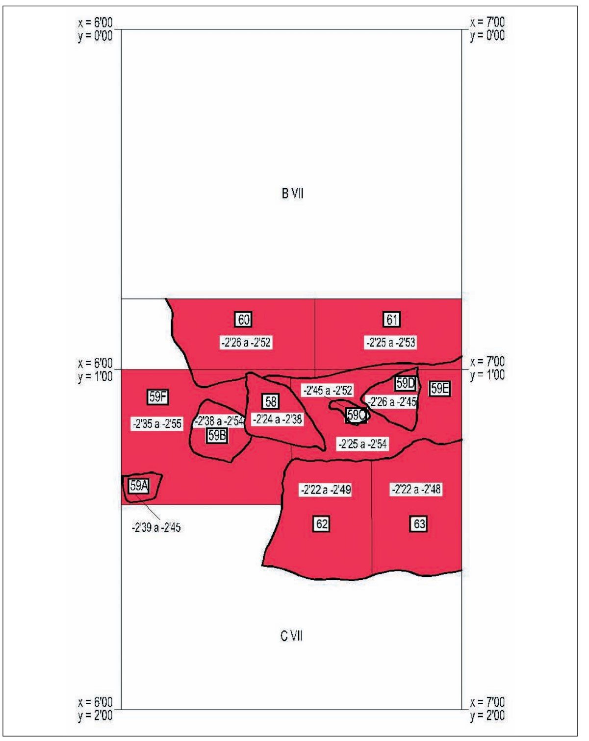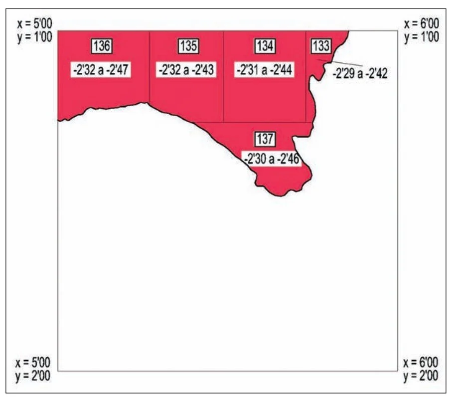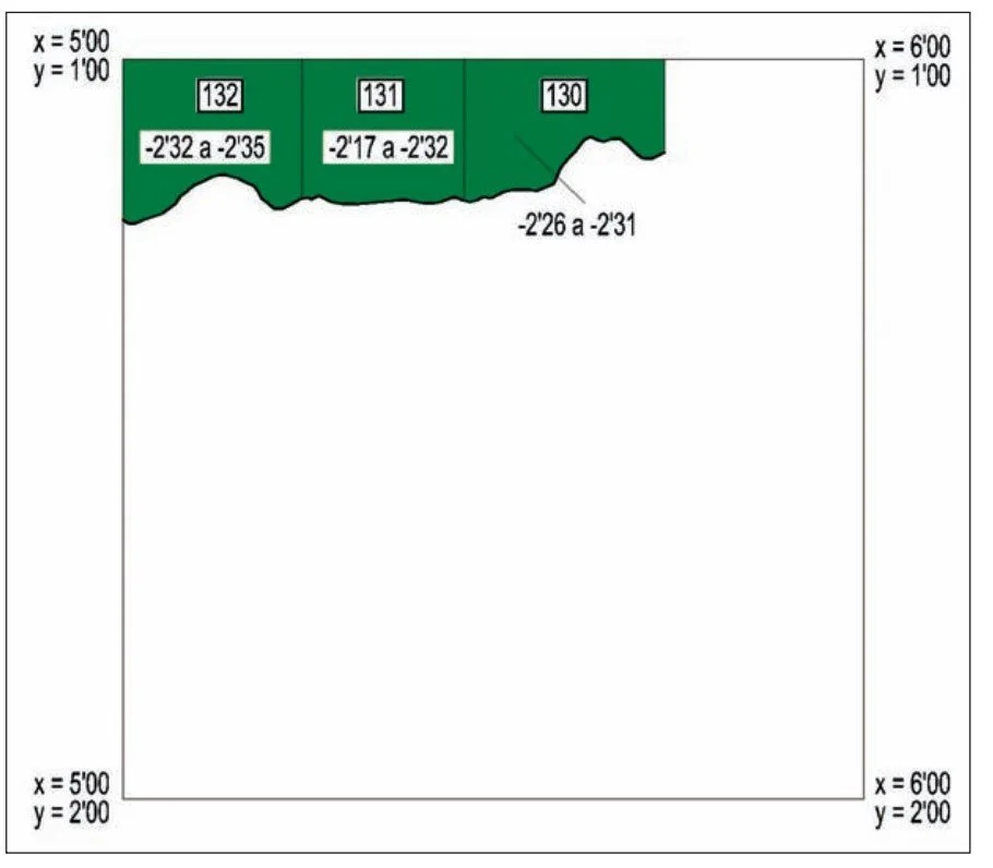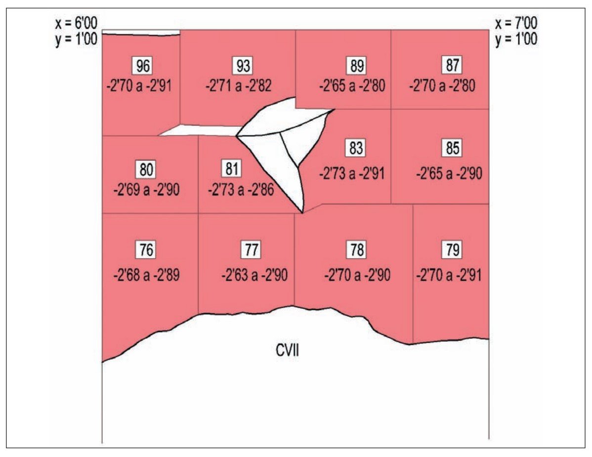 ■ El complejo CB-08-CV-5A-216 estaba en las siguientes coordenadas: X = 4,11 Y = 1,25 / X = 4,25 Y = 1,25 ❙ X = 4,12 Y = 1,25 / X = 4,25 Y = 1,50