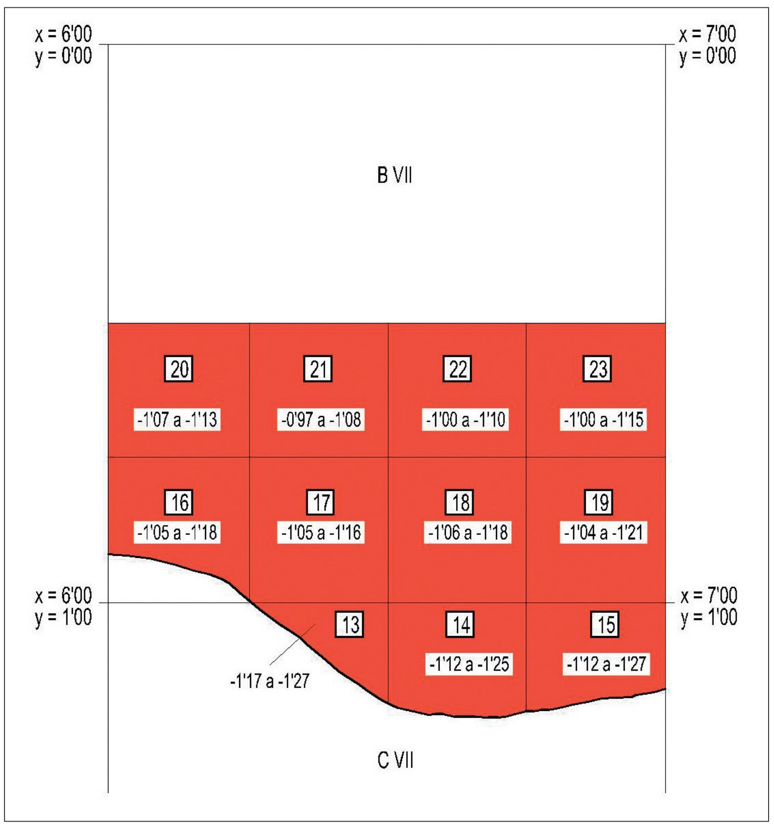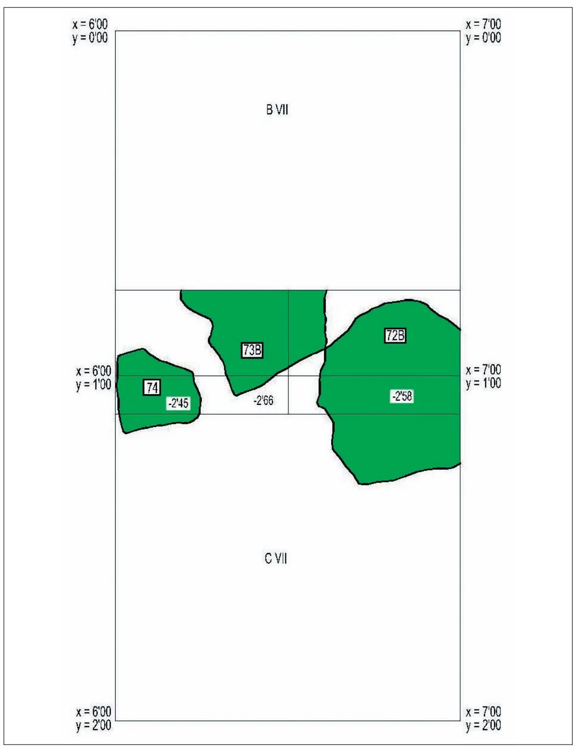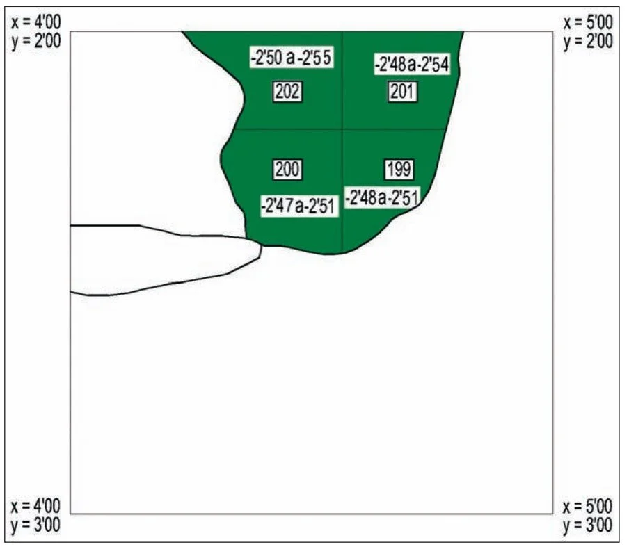 ■ El complejo CB-08-CV-5A-216 estaba en las siguientes coordenadas: X = 4,11 Y = 1,25 / X = 4,25 Y = 1,25 ❙ X = 4,12 Y = 1,25 / X = 4,25 Y = 1,50