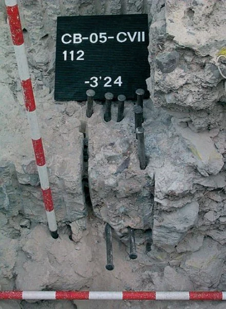 Esta metodología se ha aplicado al resto del estrato 6, al 5 (arenas y limos) y al 4 (cantos con limos). Los dos últimos estratos han demostrado ser bastante más blandos que los anteriores, y se pudieron excavar con procedimientos habituales (pinceles y palustres pequeños).