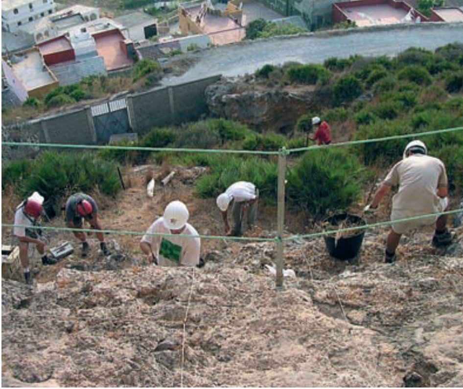 Se procedió al descepe de palmitos que fueron trasladados para su posterior trasplante. Igualmente dicho colega nos informó de la importancia de la especie Rupicapnos africana, que había sido protegida en su afloramiento en diversos puntos de la zona (Ramos, Bernal y Castañeda, eds., 2003: 242, figura 2).