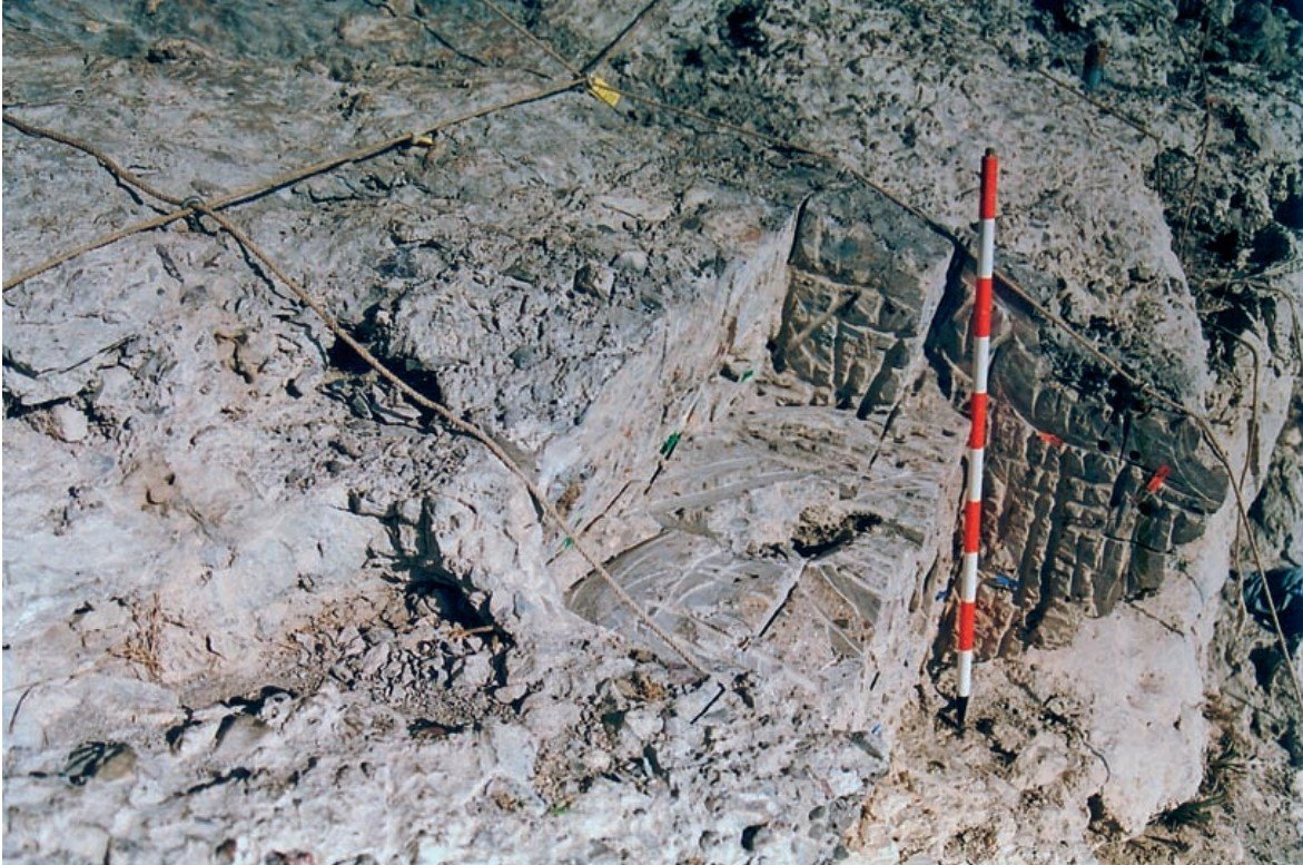 de la excavación del Abrigo de Benzú. En la parte oeste de la cuadrícula CV ya se venía documentando esta base geológica de dolomías.