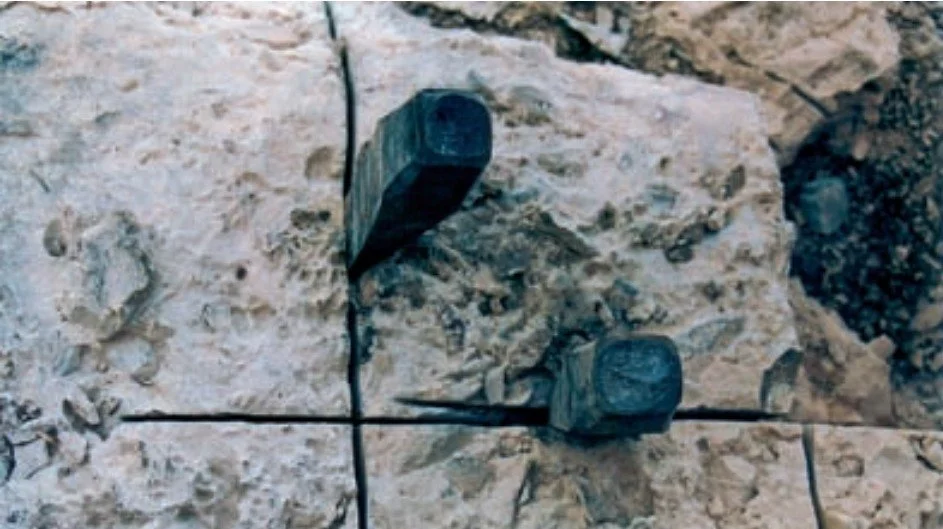 Posteriormente se situaban en dichos huecos las cuñas y contracuñas, que eran golpeadas con martillos (FIGURAS 6.11 y 6.12). Como resultado de esta operación, los bloques se fracturaban a lo largo de estos planos, pudiendo entonces ser extraídos.