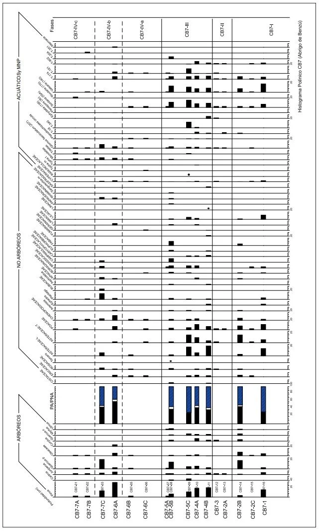 ■ Las fases II, IVa y IVc del perfil CB7, de menor diversidad, se adelantan ligeramente, al menos en relación con el estrato que representan, respecto a las identificadas en la secuencia Cbt.