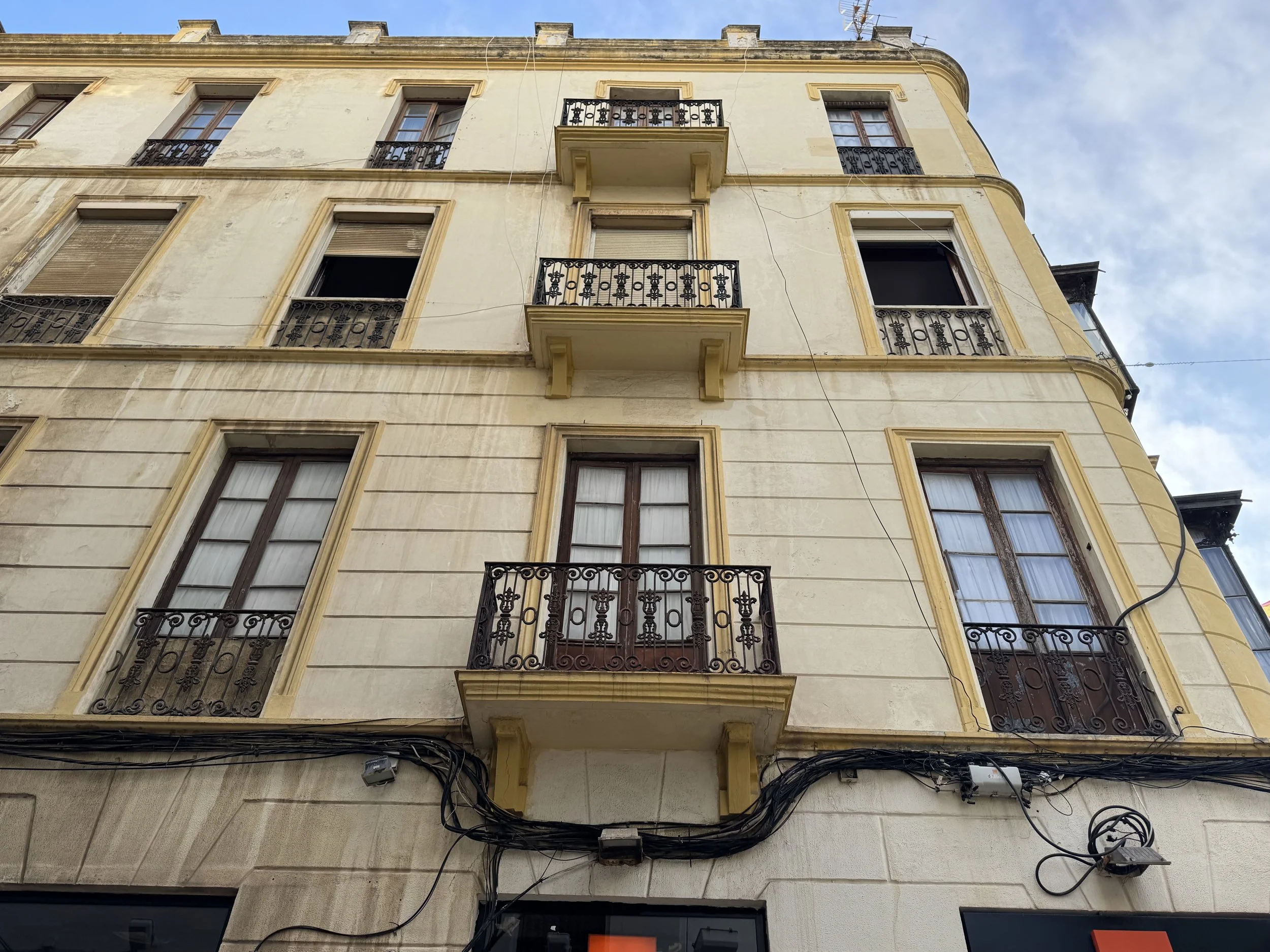 Estructura: Edificio en esquina entre medianeras de cuatro plantas formando manzana