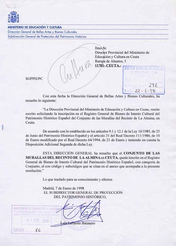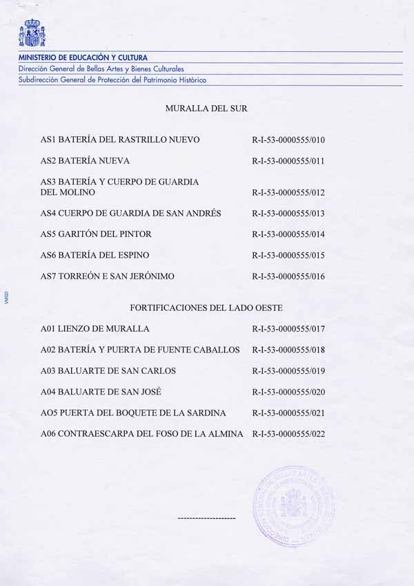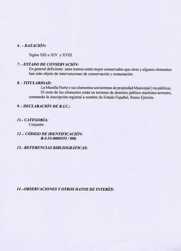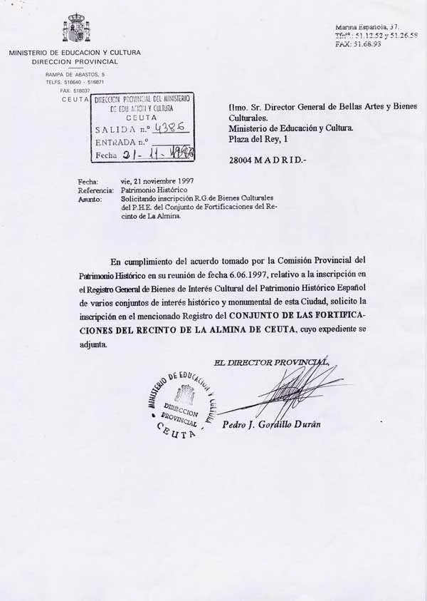 Información extraída del Plan Especial de Protección de Conjunto Histórico de las Fortificaciones del Recinto de la Almina (autores: Gurriarán Daza, García Villalobos, Pascual Origosa, Muñoz Marín)