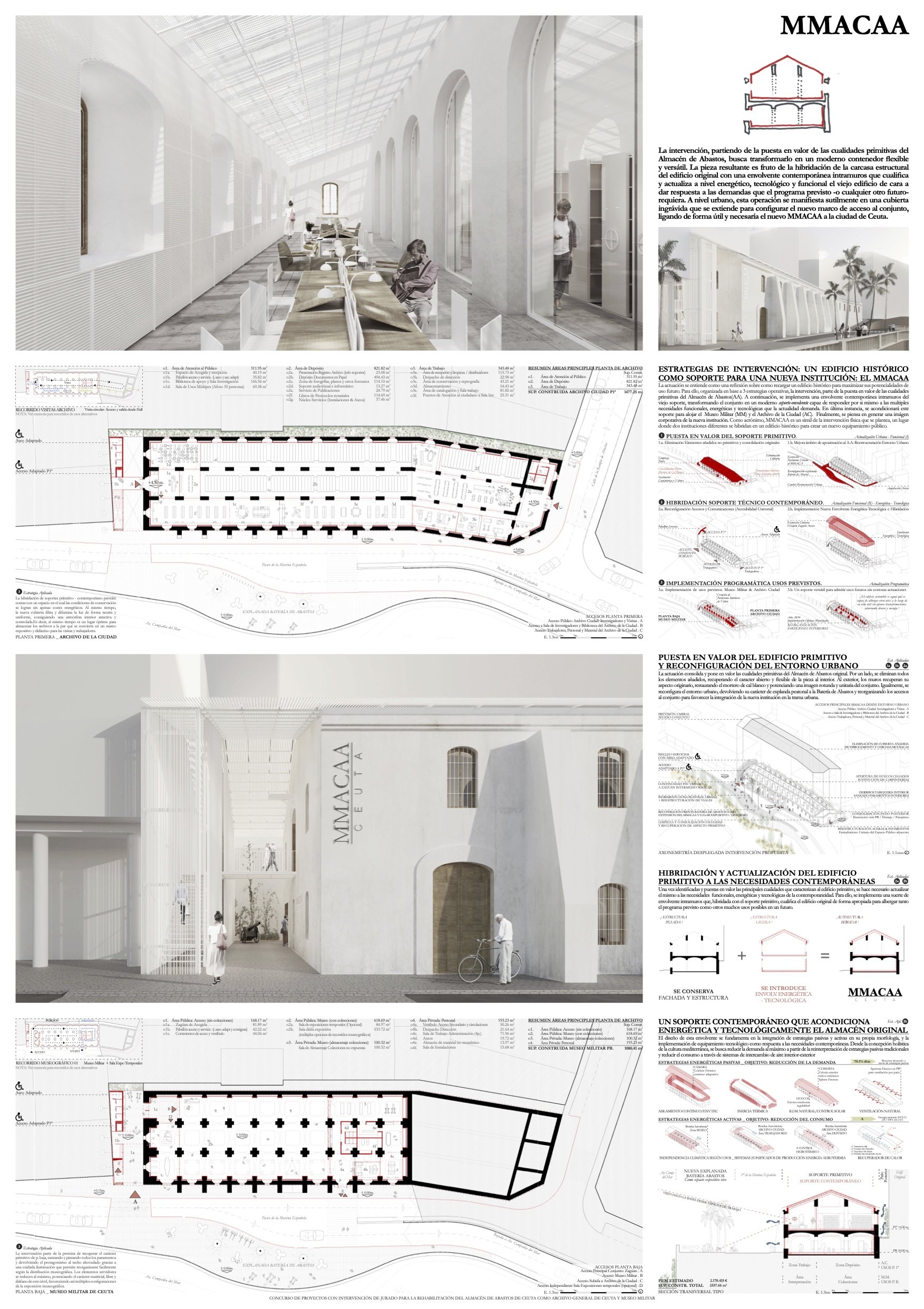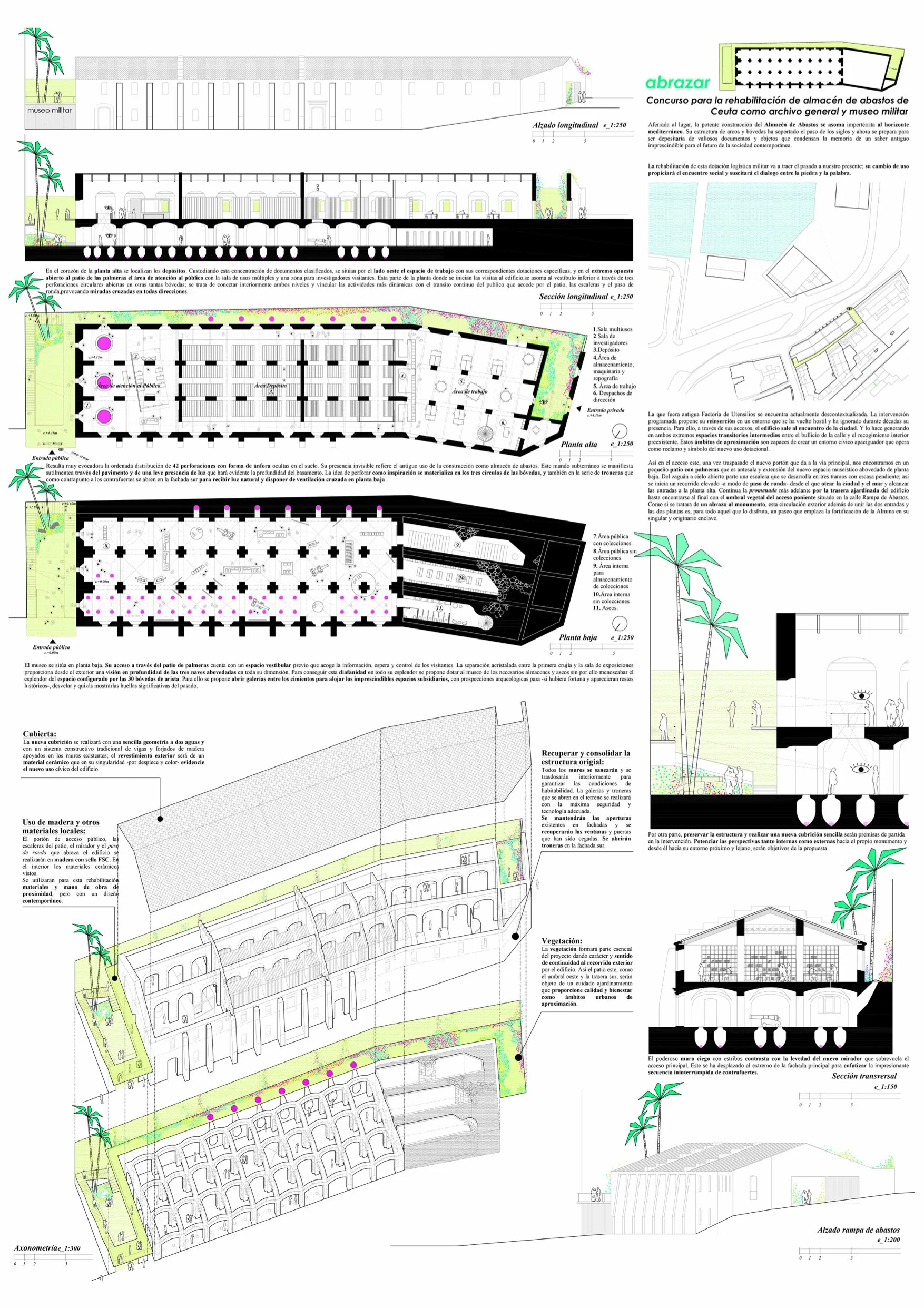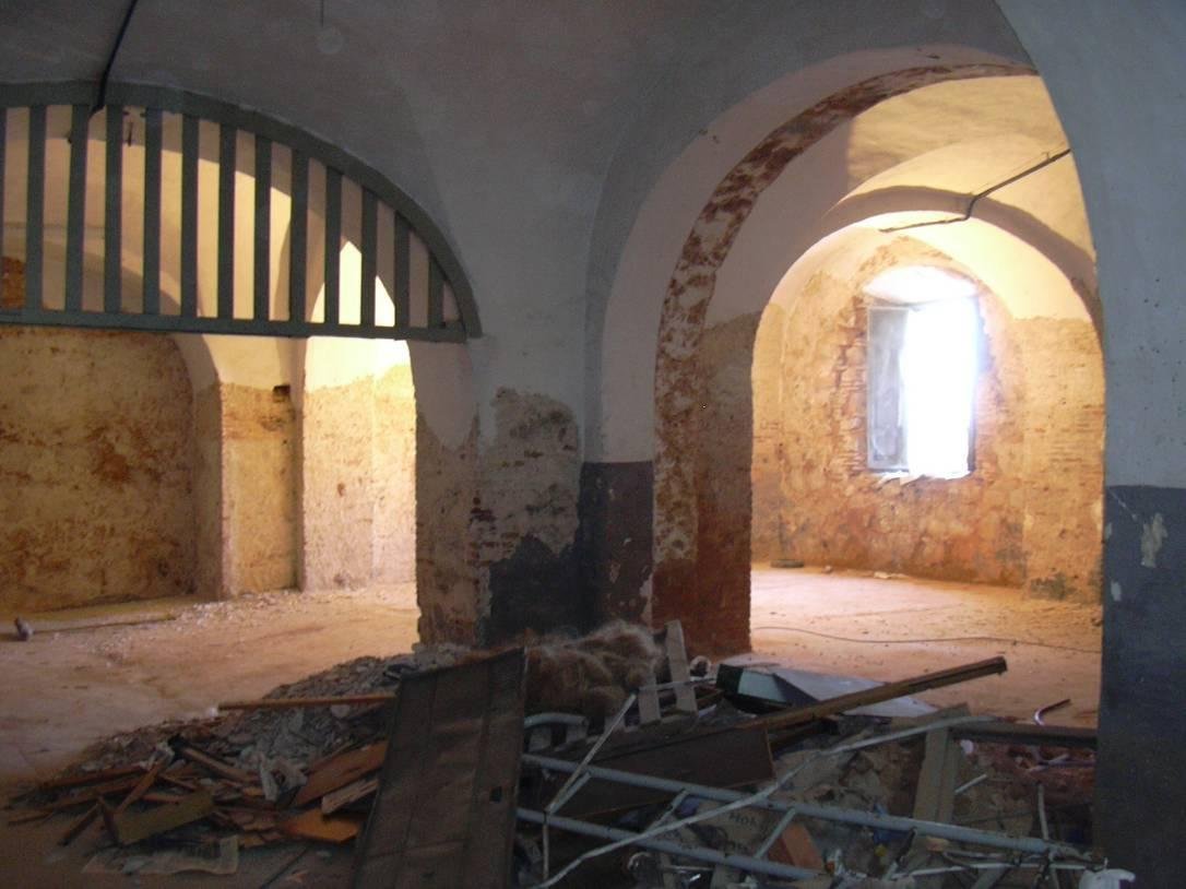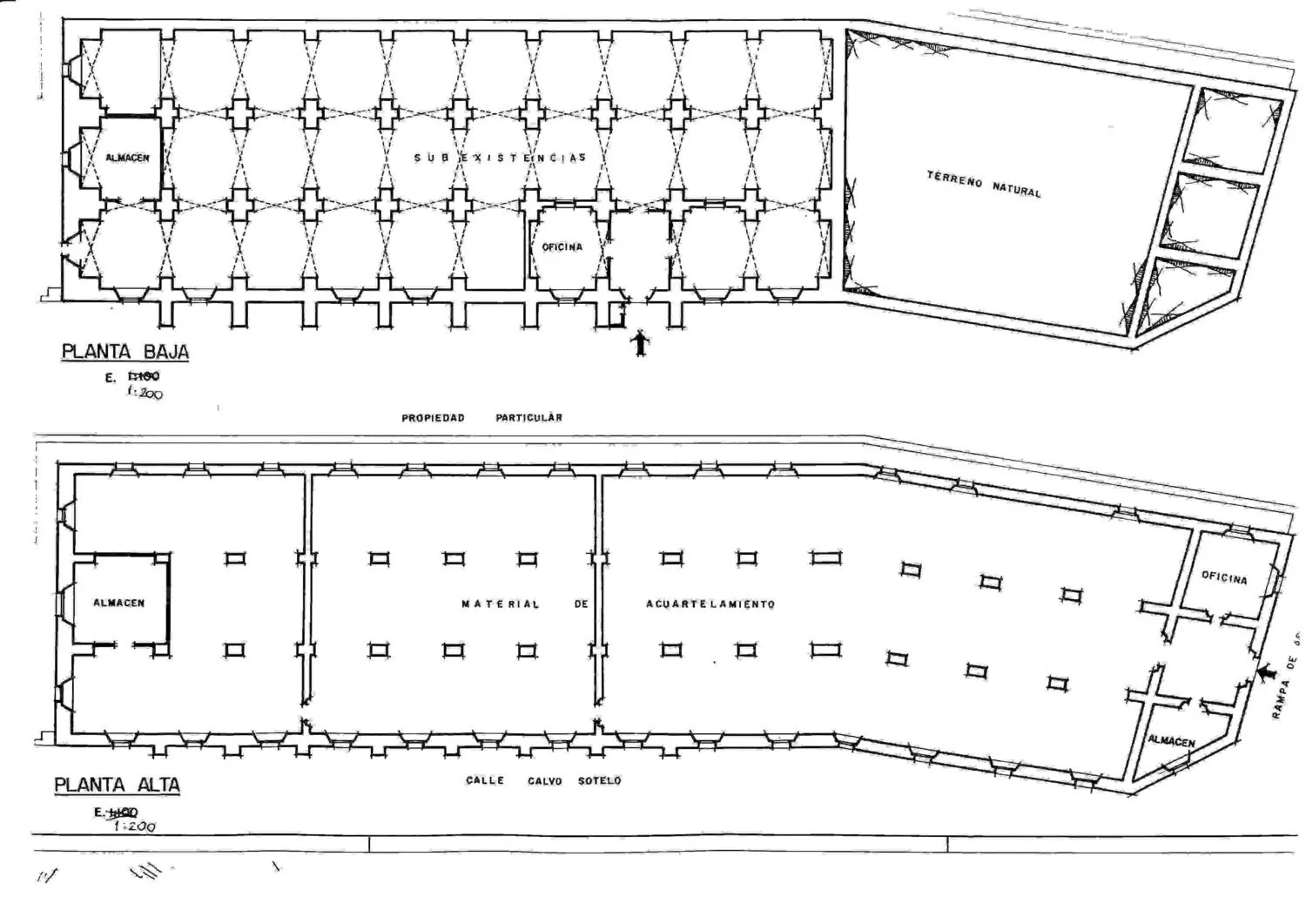 Se trata de una construcción alargada y dispuesta en dos niveles. El interior se ordena mediante pilares, cruciformes en planta baja y rectangulares en planta superior, que dividen el espacio en tres naves muy compartimentadas. El nivel inferior se cubre con bóvedas de arista, mientras que la superior se efectúa mediante cubierta a dos aguas sostenida por cerchas metálicas en algunas partes, y vigas de madera en otras. En la actualidad conserva la propiedad militar y se encuentra en fase de restauración desde el año 2007 por una escuela taller.