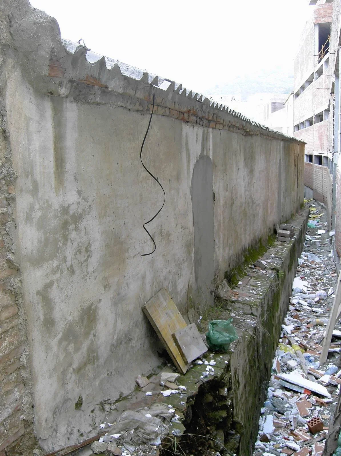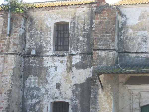 La construcción se ejecutó en sus muros principales mediante mamposterías dispuestas en hiladas entre verdugadas de ladrillo, dando como resultado una obra monolítica y de sólida construcción. El ladrillo aparece como material complementario en huecos, dinteles, pilares, contrafuertes o bóvedas