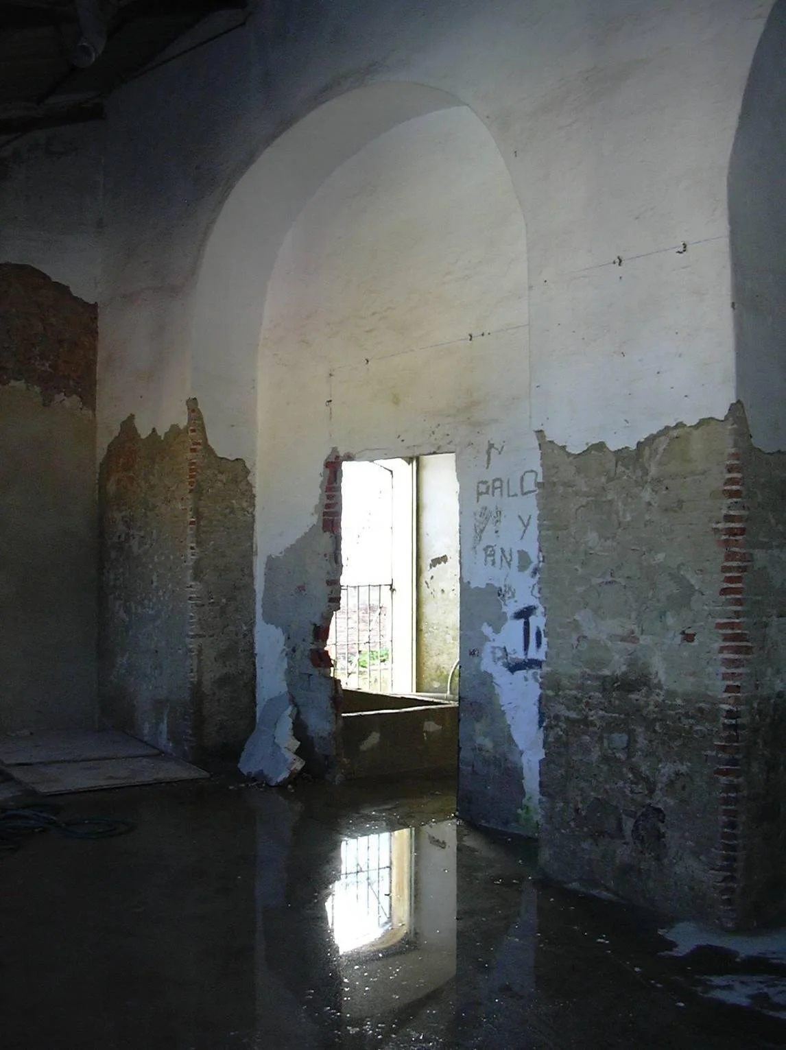 Posee dos plantas divididas en tres naves. La inferior se fragmenta mediante pilares cruciformes sobre los que apean bóvedas de arista, mientras que en la superior los soportes serán rectangulares, apoyando arcos rebajados sobre los que se disponen cerchas. Son metálicas en la nave central y parte de las laterales, donde aún se conservan algunos pares de madera. La cubierta actual se solventa a dos aguas con planchas de fibrocemento.