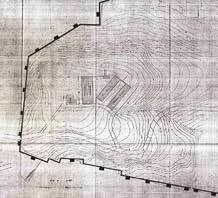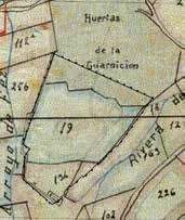 Es el ingeniero militar Federico Mendicuti, quien en el proceso de la delimitación parcelaria (ig. nº1) que efectúa en el Campo Exterior, en el año 1868, recurrirá a los restos de la estructura geométrica del tapial meriní para realizar el fraccionamiento de la zona, acto donde resuenan ciertos valores agrarios, “Huerta de la Guarnición” sujetados al concepto de tierra, de enraizamiento. Con suave pendiente hacia el estrecho de Gibraltar, la huerta, iba a suponer con el especíico cultivo de patatas, a un mayor sostenimiento alimenticio de las tropas acantonadas al sur de dicha parcela.