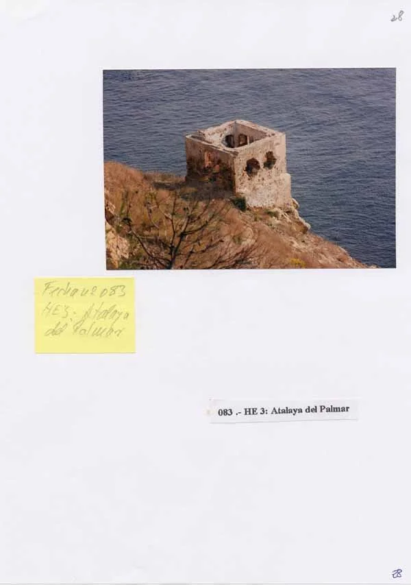 Esta Atalaya del Palmar forma parte de la secuencia de pequeñas estructuras de vigilancia costera con que se completó el perímetro del Hacho hacia finales del siglo XVIII. El planteamiento fue el de colocar, en puntos intermedios de los fuertes del perímetro peninsular, de cuerpos de guardia en estancias dispuestas a tal efecto, con terrados que les permitían, dadas las eminencias en que se situaban, actuar como atalayas de vigilancia costera. Es el caso de Alfonso Díaz, las Cuevas...