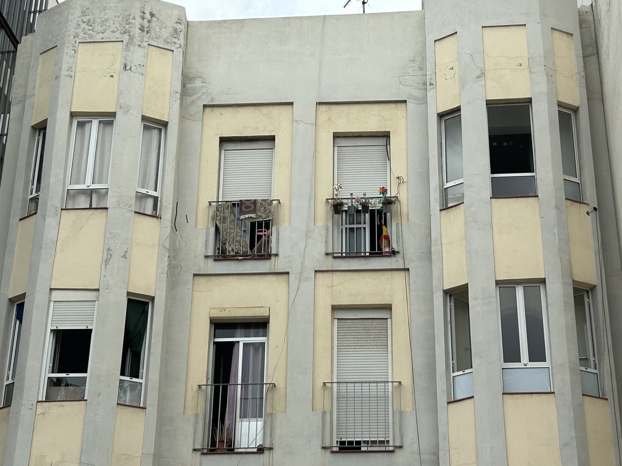 Edificio en esquina entre medianeras de cuatro plantas formando manzana.