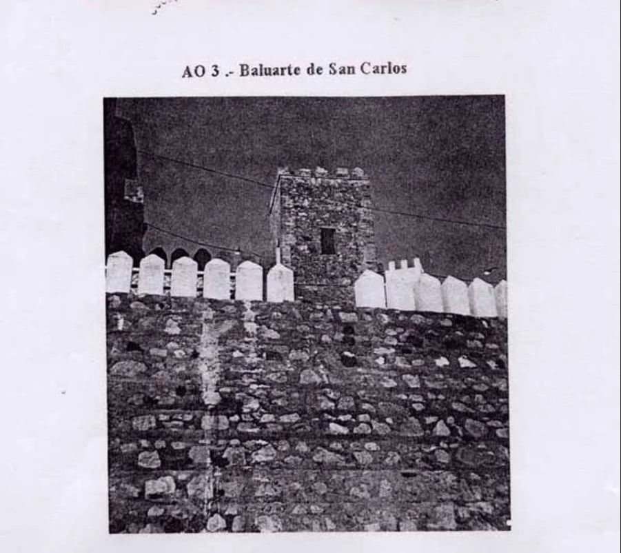 Se identifica un muro adosado a continuación del baluarte de San Carlos por su lindero Este, que arranca su base desde la playa y tiene un trazado en paralelo al lienzo de muralla del siglo XVIII. Dicho trazado no se identifica en los planos de la época, anteriormente descritos. En la planimetría histórica de esa época el límite del baluarte de San Carlos coincide con las esquinas donde se ubican las garitas de guardia.