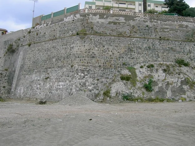 En este tramo es donde se ubica el elemento que tratamos en esta ficha del catálogo, y que se compone de una muralla ataludada que configura un baluarte de trazado trapezoidal.