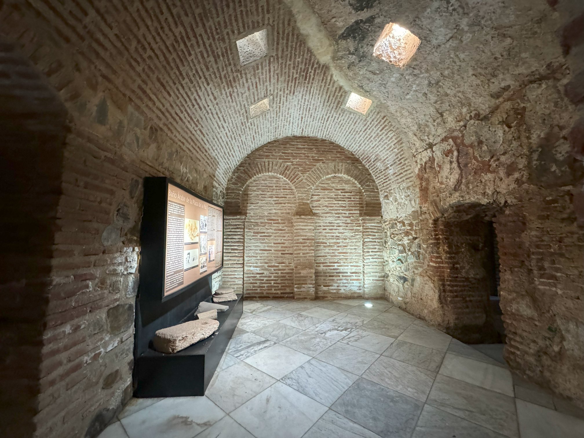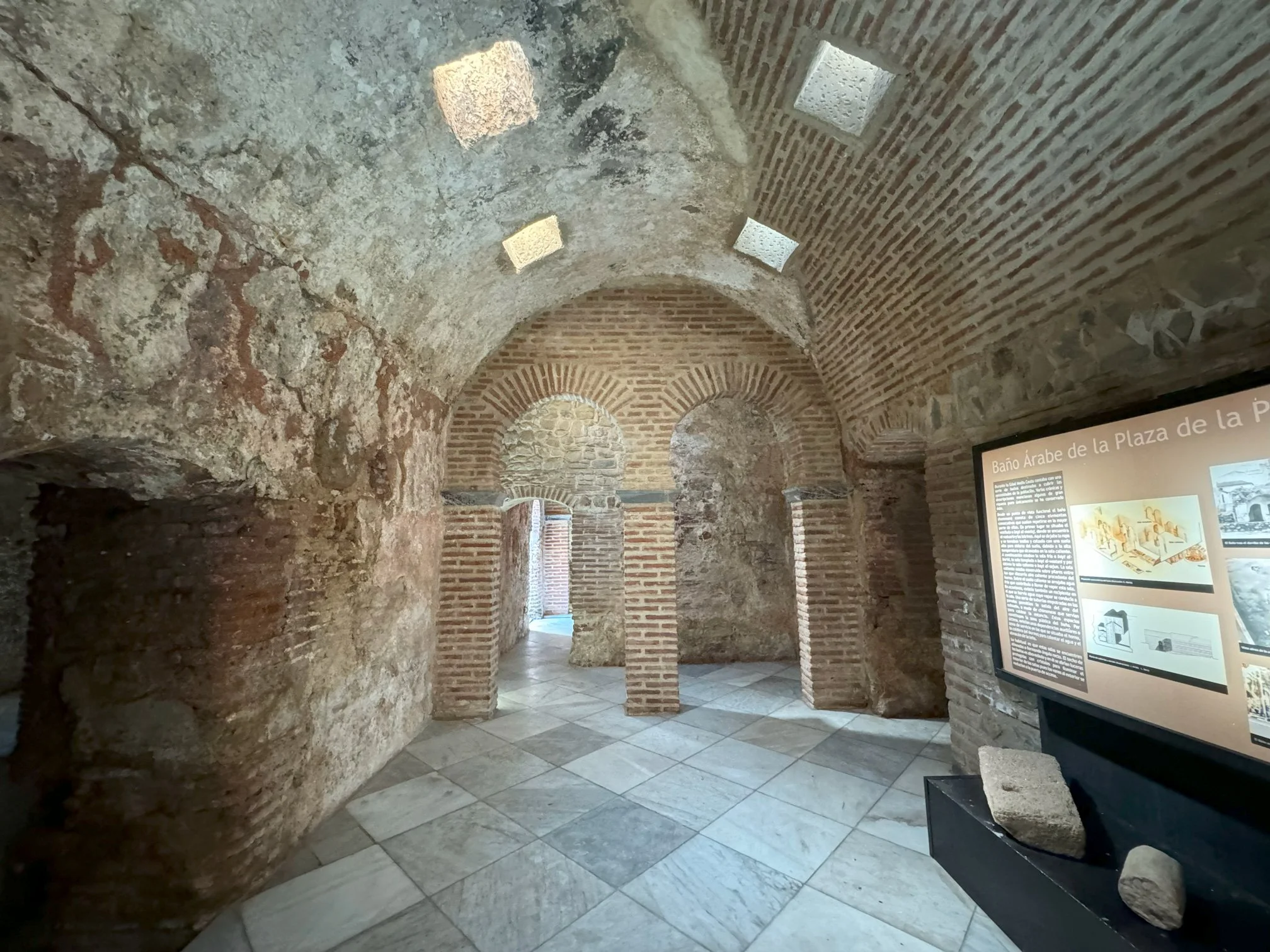 Los vestigios conservados corresponden a un baño medieval de medianas dimensiones. Se sitúa en las inmediaciones de lo que debió ser el límite septentrional de uno de los arrabales de la medina islámica, en un espacio ocupado en época medieval de forma continuada al menos desde el siglo XI.