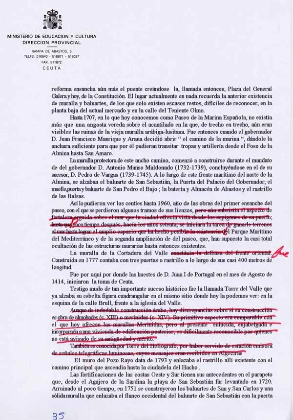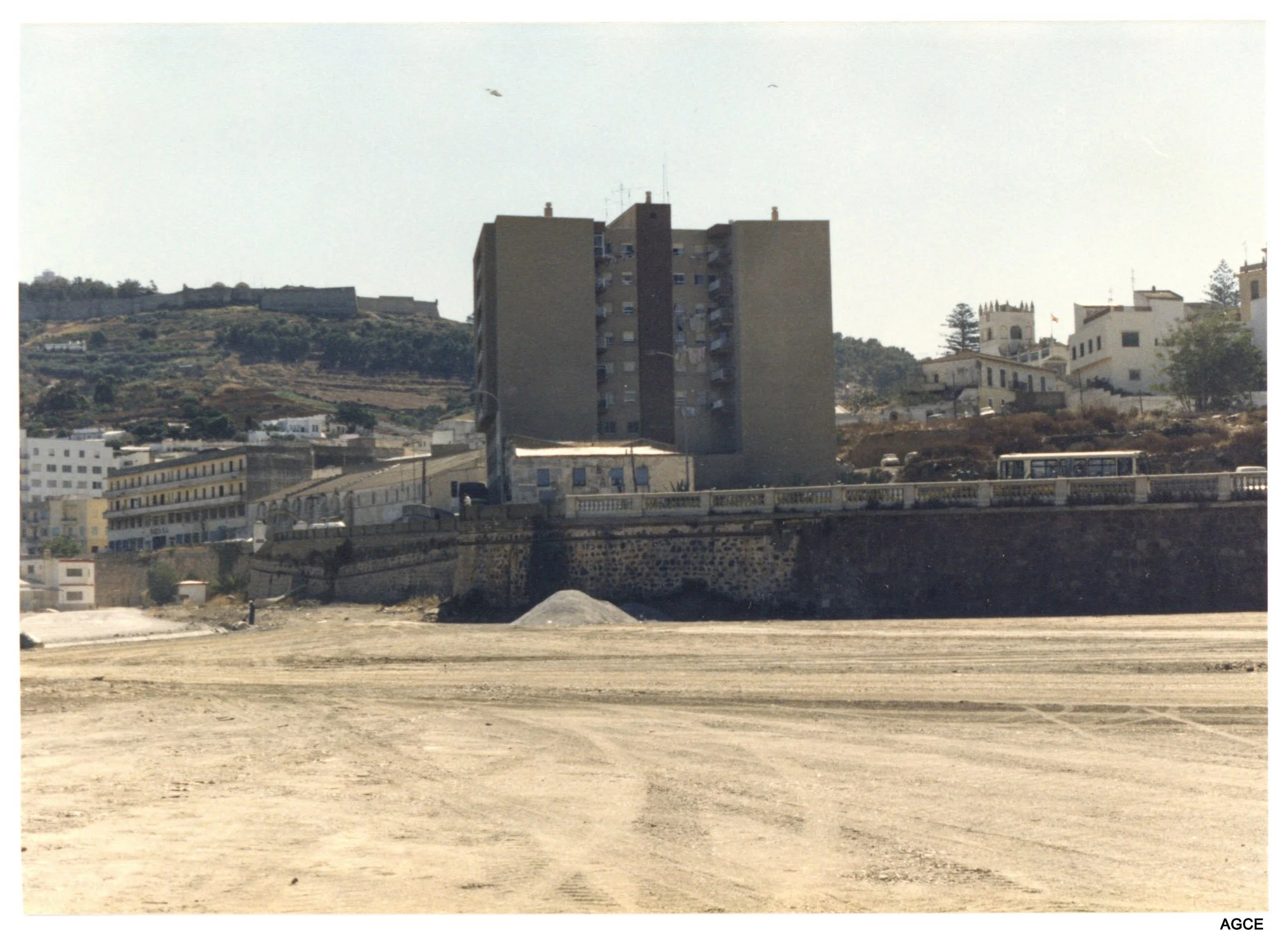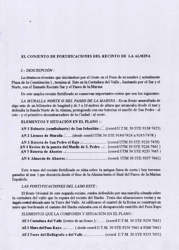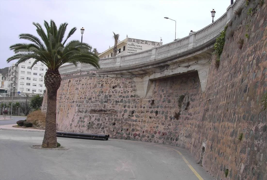 en el nuevo límite del paseo, abandonando ya su posición original. En una segunda fase llevada a cabo en el último cuarto del S.XX se ejecutó la ampliación por el Norte de la ciudad ganando terrenos al mar, en la que se volvió a ampliar el Paseo de la Marina Española, adosando nuevas construcciones y muros de contención en gran parte del alzado de la muralla.