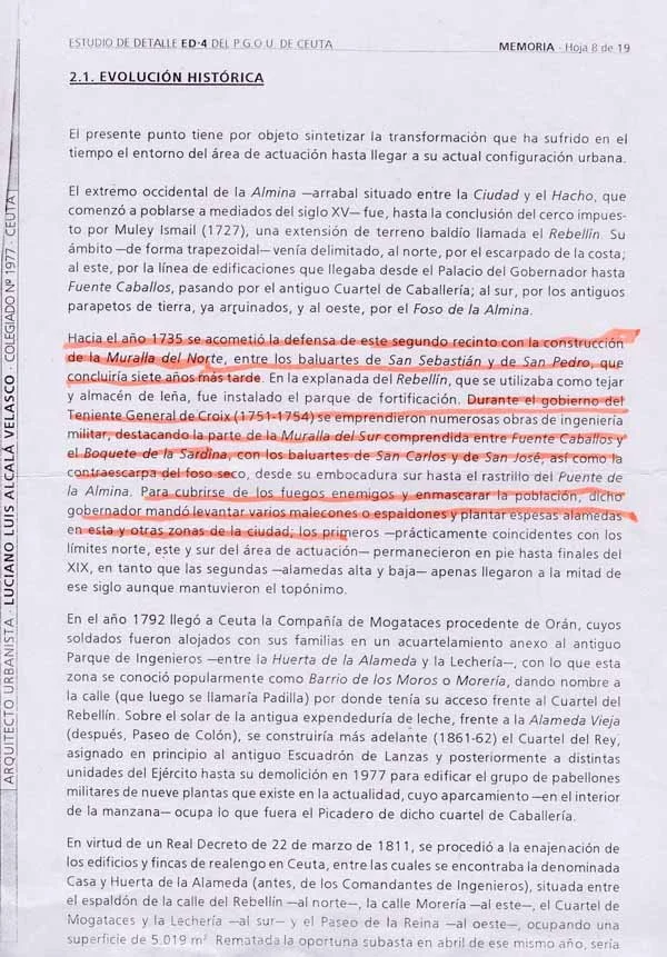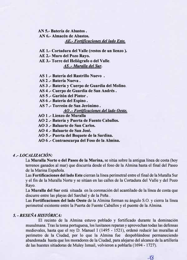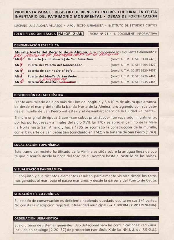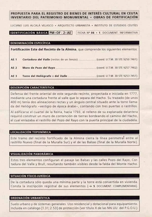 Información extraída del Plan Especial de Protección de Conjunto Histórico de las Fortificaciones del Recinto de la Almina (autores: Gurriarán Daza, García Villalobos, Pascual Origosa, Muñoz Marín)