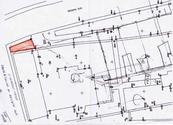 mortero calizo, que tiende a seguir hiladas, aunque en algunos puntos el aparejo se vuelve más grosero e incluye con profusión ripios de forma desordenada. El relleno de la muralla se realizaría con calicanto, si bien es difícil saber con qué espesor, ya que nos es imposible definir la latitud total del lienzo. El conjunto se protegía de forma conveniente con un fino enlucido de mortero de cal, que se formalizaba en el tramo inferior dejando al descubierto la cara central de los mampuestos, a modo de vitola. En el tramo que nos ocupa, la composición de estos materiales se diferencia sensiblemente del resto del lienzo Norte, siendo más profuso el empleo del mortero de revestimiento, y de menor proporción la vitola o parte central del mampuesto que queda al descubierto. Además el mortero empleado es de tipo blanquecino-ocre, posiblemente con la adición de pigmentos de óxido que le dan un tono rojizo. El ladrillo se utiliza de forma accesoria en la construcción del cordón magistral, hoy desaparecido y de los mechinales.