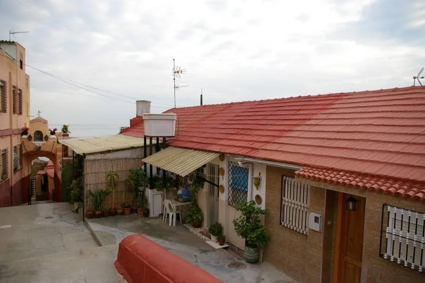 Actualmente las edificaciones se adosan a ambos lados de la rampa de bajada a la playa, dejando un paso reducido de por el interior en algunos puntos de 2.5 m.
