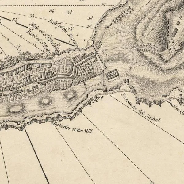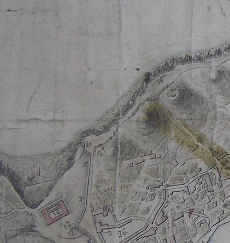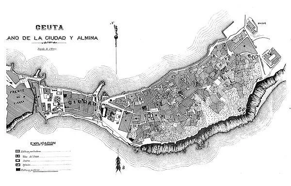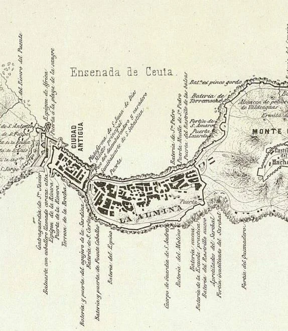 Hasta este momento, y desde que la ciudad fuera ocupada por los portugueses (De 1.415 a 1.656, periodo durante el cual el vasto perímetro medieval de la Ceuta musulmana se contrae al estrecho istmo de comunicación de la península de la Almina con el continente), la Almina era vista como “una montaña con valles i llanos, i algunas eminencias”. Jean Blaeu hacia 1.640.