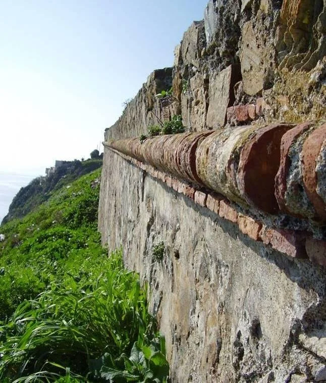 El trazado de las obras de fortificación sigue la línea de la costa adaptándose al escarpe. A su pie existe un importante talud de roca natural que cae hasta la superficie del mar.