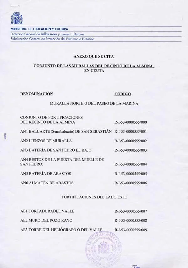 Información extraída del Plan Especial de Protección de Conjunto Histórico de las Fortificaciones del Recinto de la Ciudad (autores: Gurriarán Daza, García Villalobos, Pascual Origosa, Muñoz Marín)