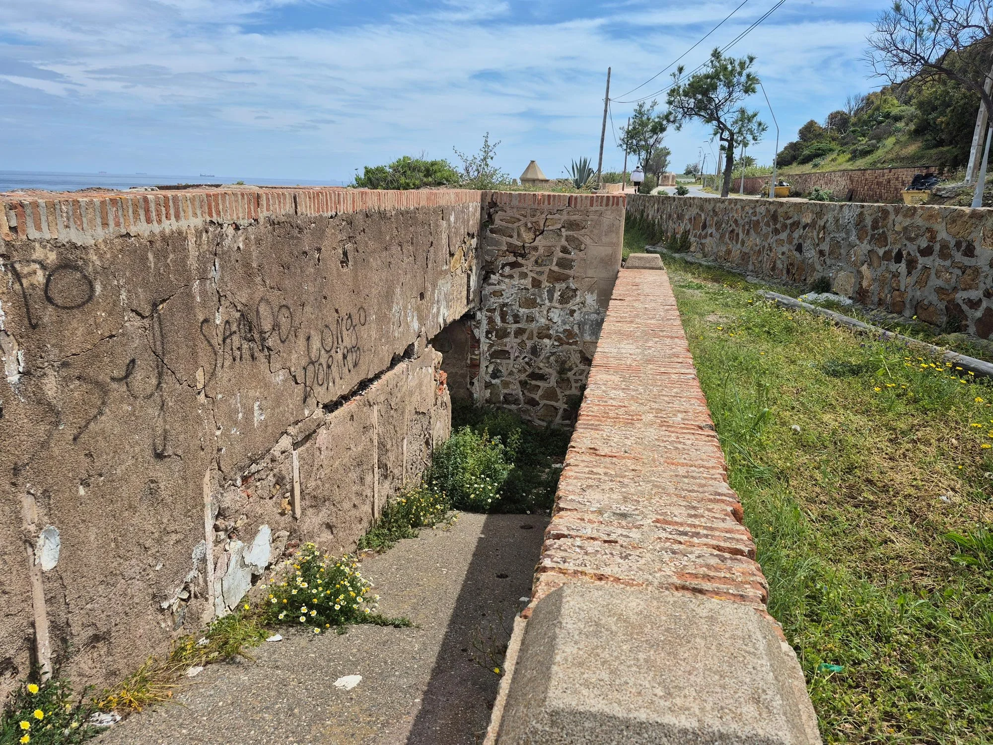 Al oeste encontramos unas estructuras muy transformadas consistentes en una serie de muros más o menos paralelos al camino que encierran una rampa que se dirige a un postigo que conecta al exterior. Como decíamos, el grado de transformación sufrida en esta fortificación hace muy difícil la identificación de los elementos originales.