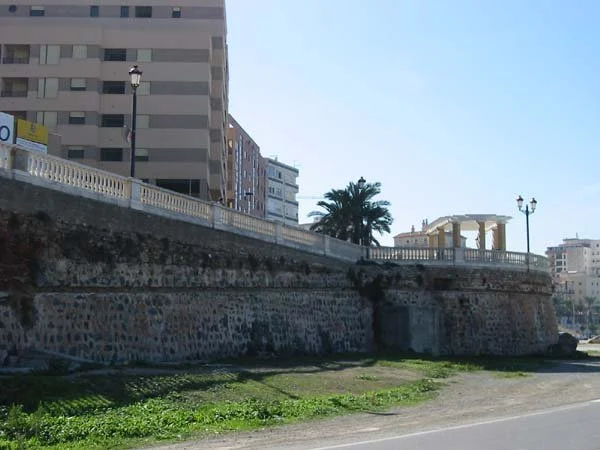 Debido a la propia configuración topográfica de la Almina, cuya relación con el mar se hace más directa en el Norte por donde es mucho más accesible, la ciudad se ha visto históricamente necesitada de defender este frente por medio de construcciones de tipo militar. En su origen, se levantó una cortina torreada que servía de defensa a los arrabales islámicos. Tras la conquista de los portugueses, y el posterior abandono de la misma por parte de éstos, la muralla se fue deteriorando, llegando a desaparecer en algunos tramos. Con la repoblación de la Almina en el siglo XVIII se decide dotarla de un nuevo sistema de construcciones defensivas, formada por lienzos de muralla reforzados en puntos estratégicos por baterías, baluartes y semibaluartes que se adelantan a los lienzos, y zonas de vigilancia con la ejecución de garitas.