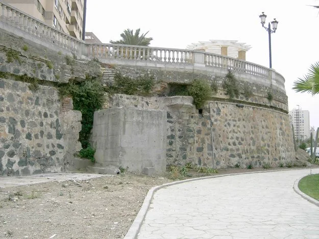 Actualmente se encuentra semi-exento, pues si bien la mayor parte de su alzado está exento, tiene adosado en su extremo occidental una construcción moderna constituida por un muro de contención que sirve para formalizar un espacio peatonal a la altura de la Calle Paseo de la Marina Española.