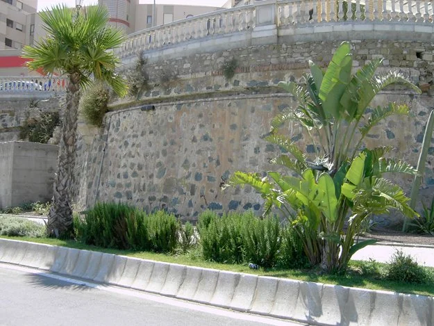 Se encuentra situada entre las calles Paseo de la Marina Española, que lo limita al Sur, coincidiendo con su cota de coronación, y la Avenida Compañía del mar que lo limita al Norte, al pie de la muralla.