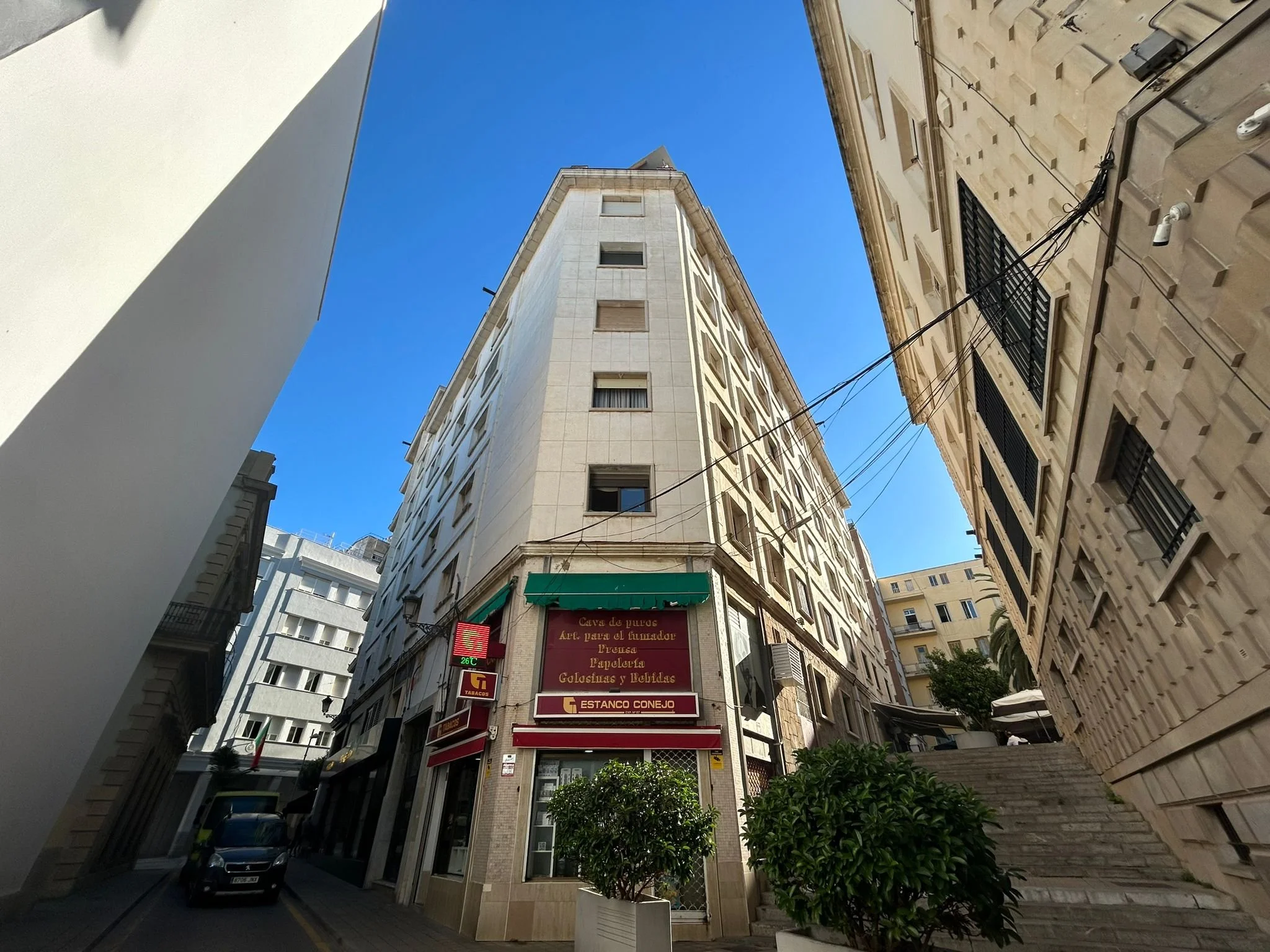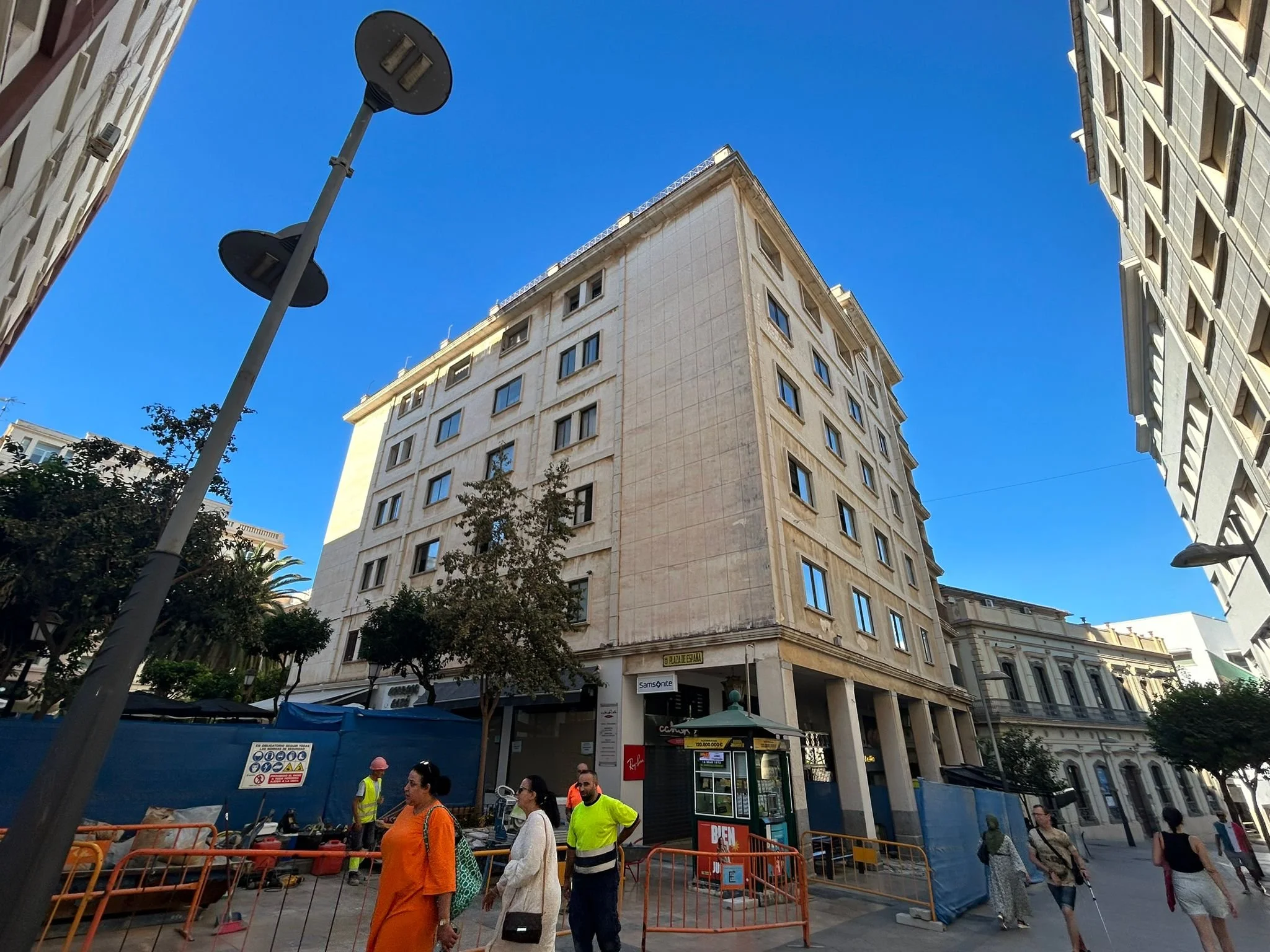 Estructura: Edificio exento de seis plantas con soportales.
