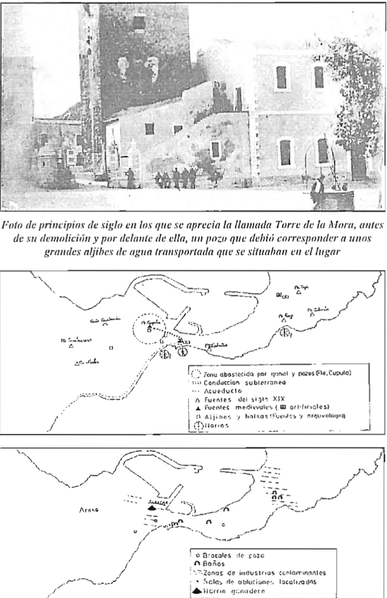Por otro lado, la extraordinaria difusión y abundancia de aljibes de agua de lluvia por todo lo que fue el perímetro de la ciudad medieval, quizás nos muestre, la solución popular a un posible intento de la autoridad para realizar una explotación de tipo impositivo respecto al agua. Esto provocaría, al menos, una duplicación en el sistema productivo. Por un lado, la autoridad y por otro lado, la base social.