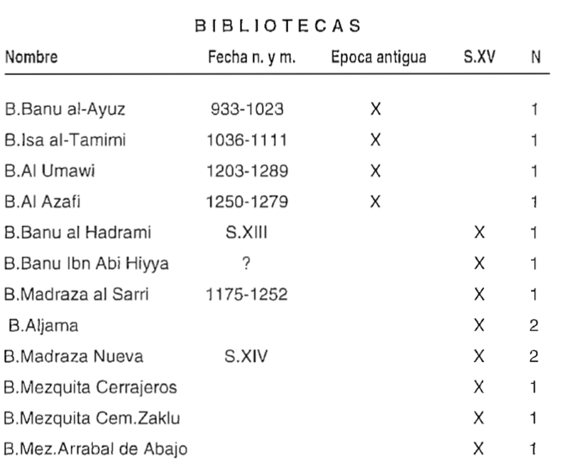 Todas las bibliotecas de las que tenemos datos cronológicos, son anteriores al siglo XIV, salvo las de la Madrasa Nueva.