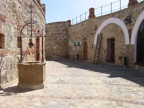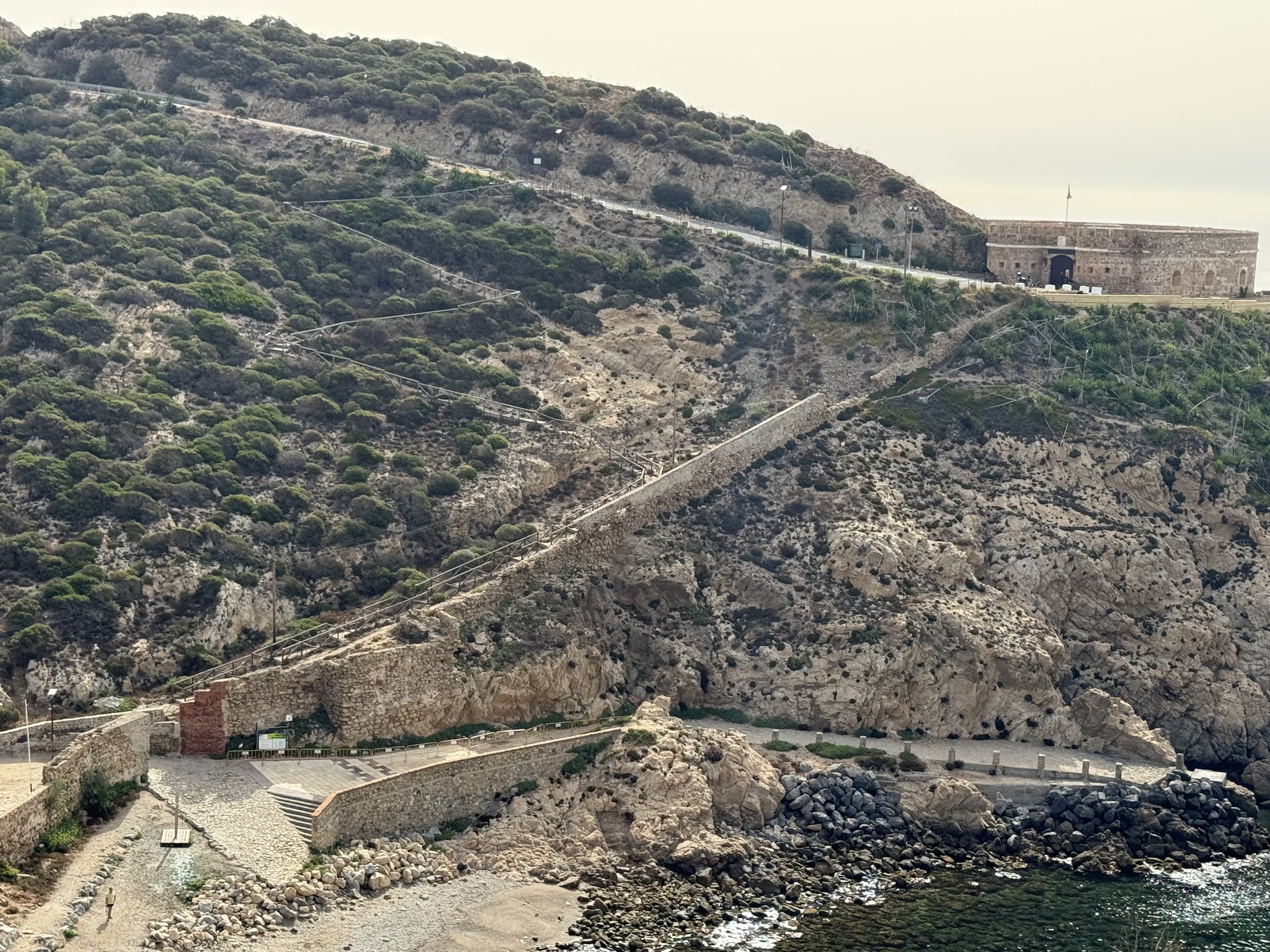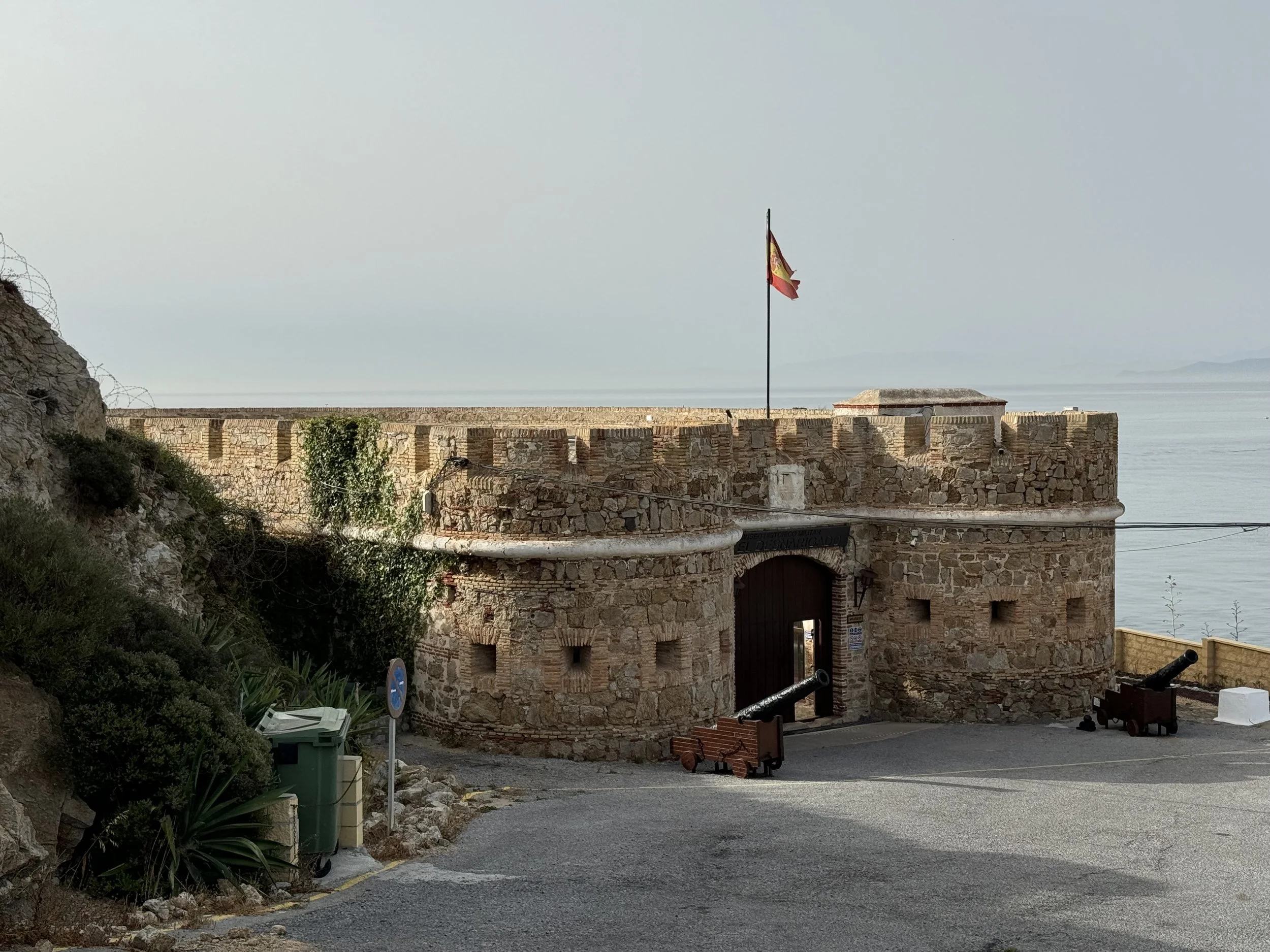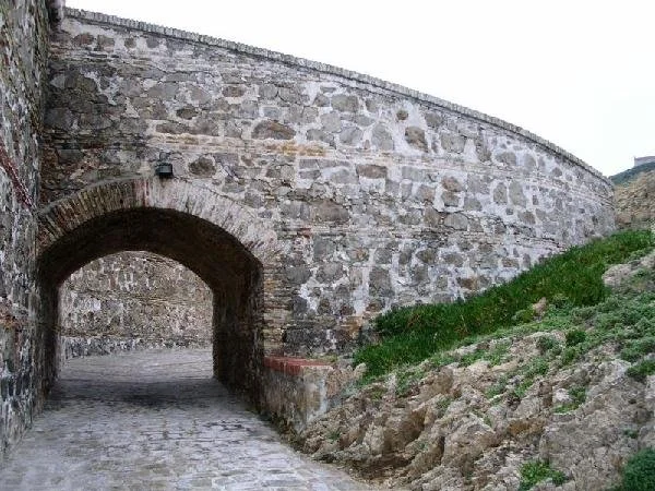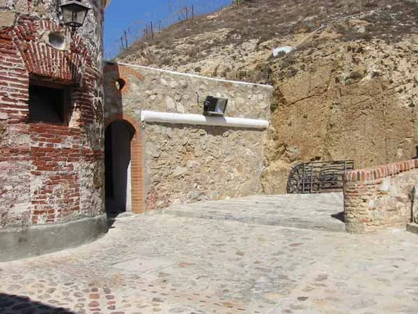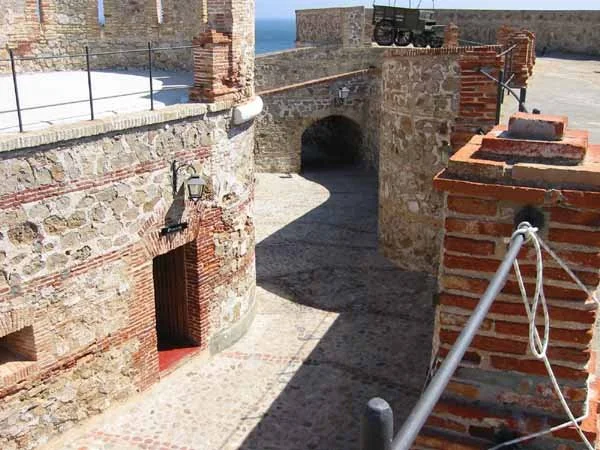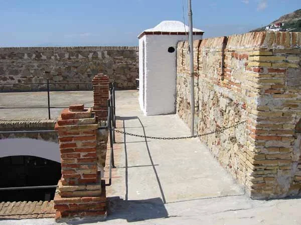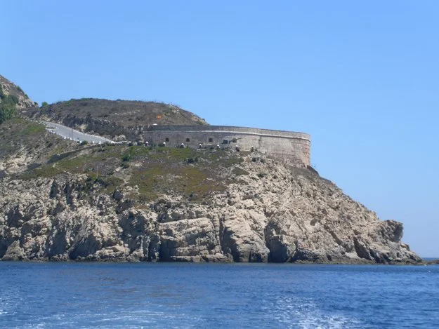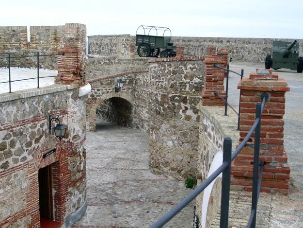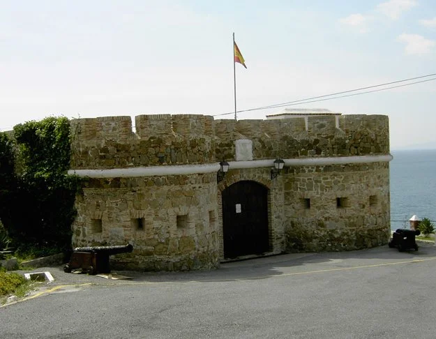 Fuerte de artillería costera moderno, diseñado conforme a los requisitos de la mitad del siglo XIX, con casamatas para emplazar las piezas principales. Está localizado en la esquina sudeste del monte Hacho. El denominado “Castillo del Desnarigado” corresponde a una fortaleza moderna, datando su estructura actual de 1863 o 1864 . Su planta presenta una interesante adaptación topográfica, lo que genera una forma que podría denominarse como orgánica, sinuosa y alargada en la parte correspondiente a las baterías acasamatadas, con otras construcciones complementarias y patios, tanto interior como lateral. Se trata de uno de los “pequeños fuertes, mejor que “reductos acasamatados” que recogen los estados técnicos de mediados del siglo XIX para la defensa costera. Tiene la fortificación una superficie de 1.280 m2. El material empleado en su construcción fue la piedra (extraída en su totalidad de las inmediatas canteras, situadas a unas decenas de metros hacia en NE) y el ladrillo macizo unidos mediante argamasa compuesta de cal, arena y pequeñas piedrecillas de las playas próximas. El Fuerte consta de dos cuerpos con planta similar a una corona circular unidos por el NO mediante un muero donde se practicó la Puerta Principal. Sobre su Puerta Principal se encuentra una reproducción del Escudo de España vigente desde la anexión de Portugal en época de Felipe II (1.581) hasta finales del siglo XVII (reinado de Carlos II). Dicha puerta está flanqueada por dos torreones de 6 metros de altura, coronados de almenas, y con 5 troneras para la fusilería a unos 2 metros de la base. La torre derecha, mantiene su estructura original con los elementos suprimidos en su gemela y escalera que se prolonga hasta la azotea del cuerpo Oeste.