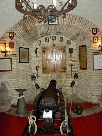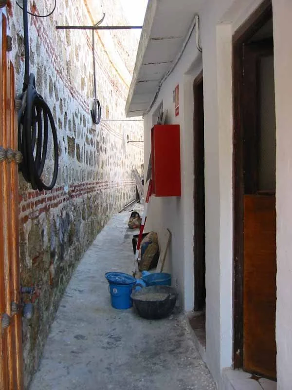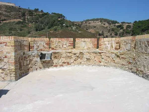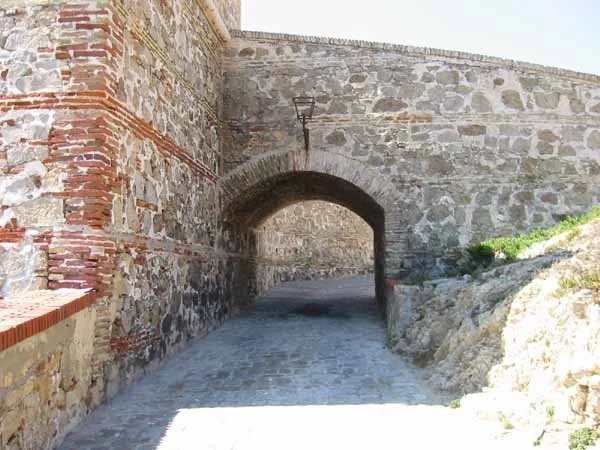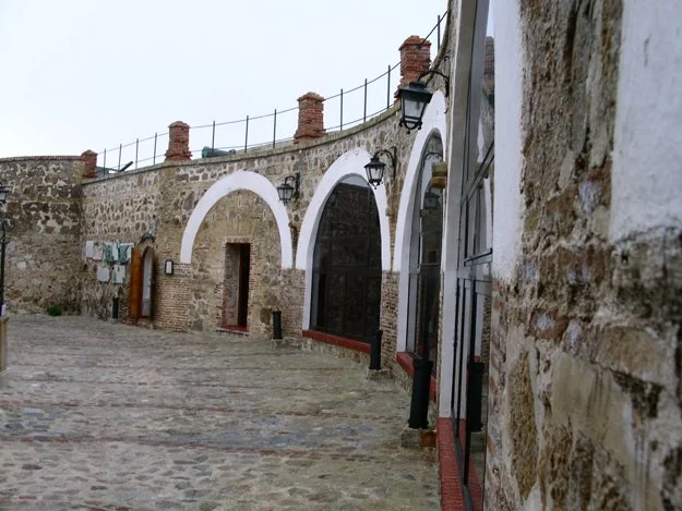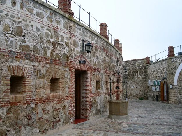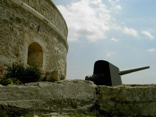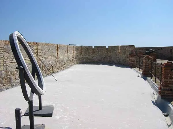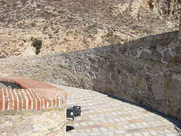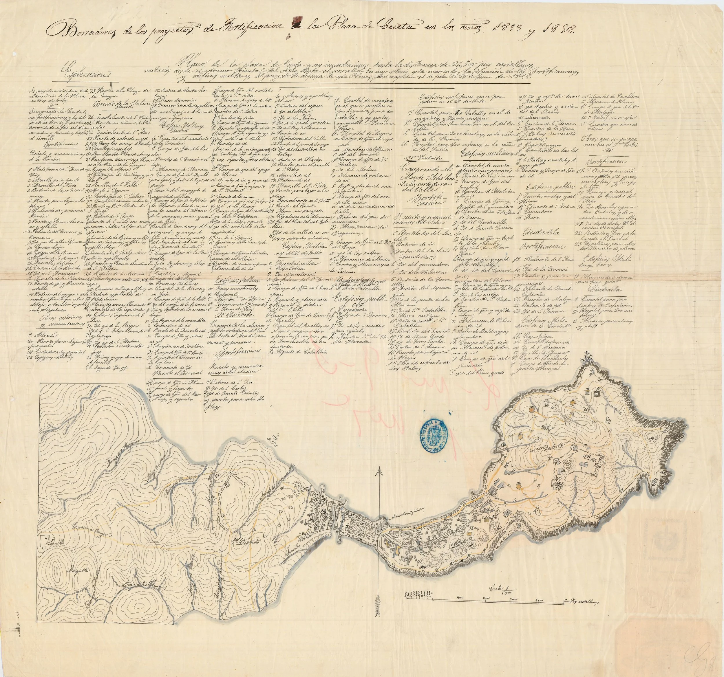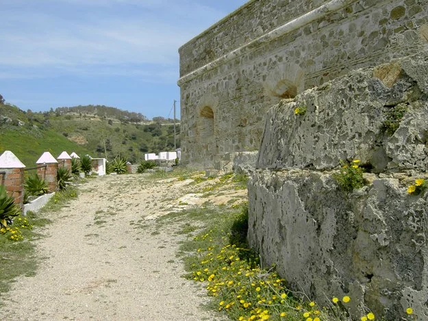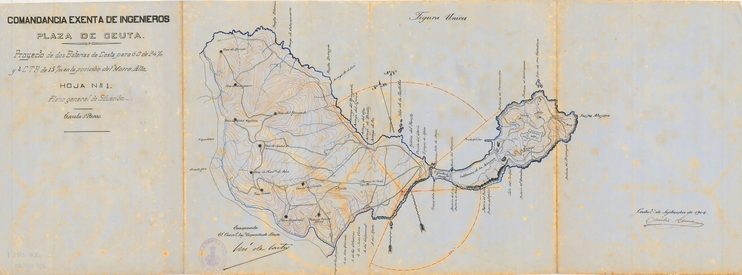 Fuerte de artillería costera moderno, diseñado conforme a los requisitos de la mitad del siglo XIX, con casamatas para emplazar las piezas principales. Está localizado en la esquina sudeste del monte Hacho. El denominado “Castillo del Desnarigado” corresponde a una fortaleza moderna, datando su estructura actual de 1863 o 1864 . Su planta presenta una interesante adaptación topográfica, lo que genera una forma que podría denominarse como orgánica, sinuosa y alargada en la parte correspondiente a las baterías acasamatadas, con otras construcciones complementarias y patios, tanto interior como lateral. Se trata de uno de los “pequeños fuertes, mejor que “reductos acasamatados” que recogen los estados técnicos de mediados del siglo XIX para la defensa costera. Tiene la fortificación una superficie de 1.280 m2. El material empleado en su construcción fue la piedra (extraída en su totalidad de las inmediatas canteras, situadas a unas decenas de metros hacia en NE) y el ladrillo macizo unidos mediante argamasa compuesta de cal, arena y pequeñas piedrecillas de las playas próximas. El Fuerte consta de dos cuerpos con planta similar a una corona circular unidos por el NO mediante un muero donde se practicó la Puerta Principal. Sobre su Puerta Principal se encuentra una reproducción del Escudo de España vigente desde la anexión de Portugal en época de Felipe II (1.581) hasta finales del siglo XVII (reinado de Carlos II). Dicha puerta está flanqueada por dos torreones de 6 metros de altura, coronados de almenas, y con 5 troneras para la fusilería a unos 2 metros de la base. La torre derecha, mantiene su estructura original con los elementos suprimidos en su gemela y escalera que se prolonga hasta la azotea del cuerpo Oeste.