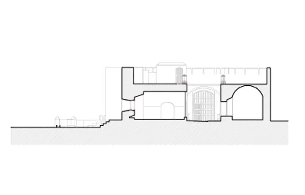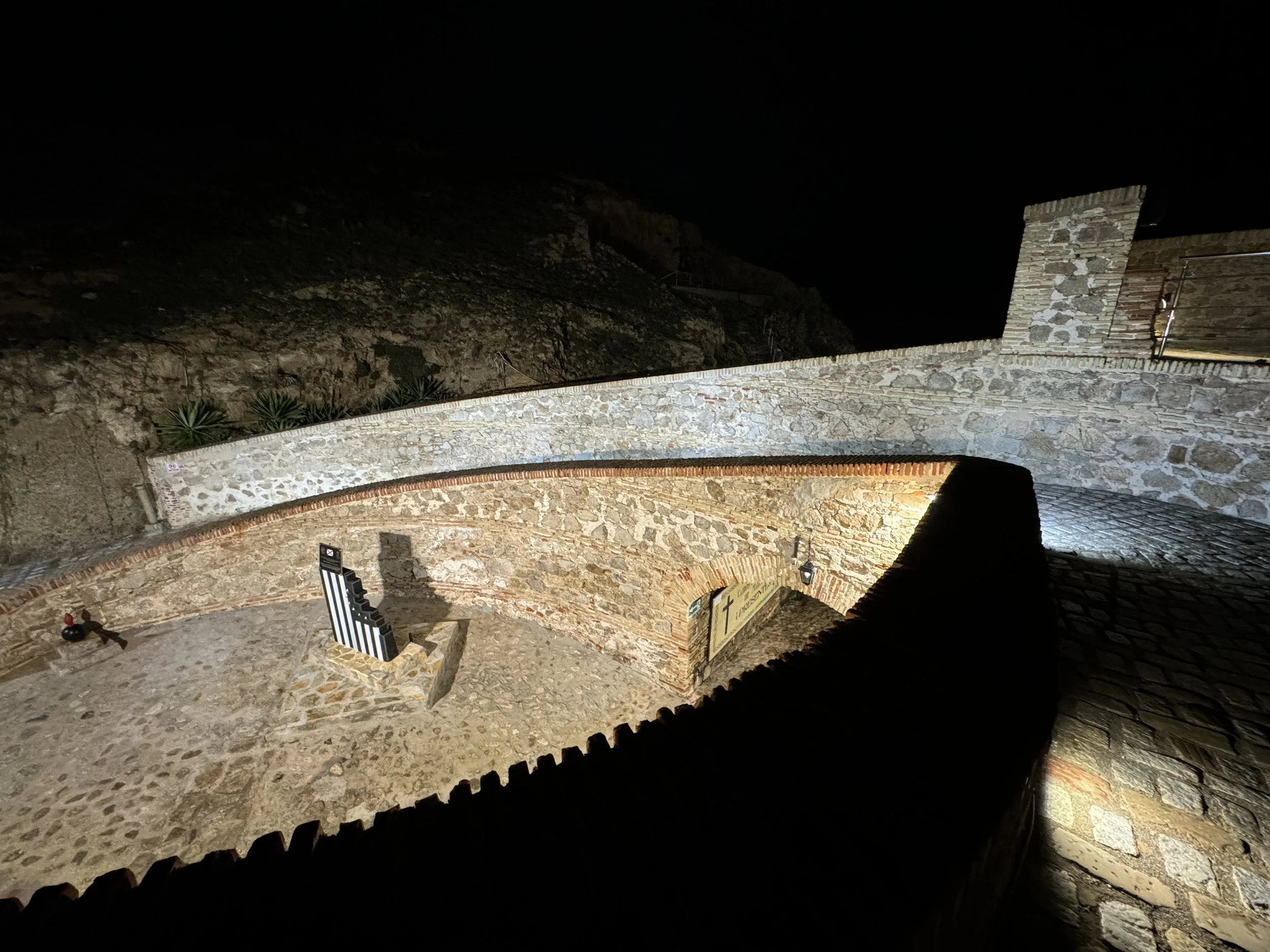 La construcción objeto de estudio se localiza en pleno borde litoral del frente sur del Hacho, en concreto dominando la punta que protege al este la cala homónima del Desnarigado o la Torrecilla. La topografía es abrupta en esta zona, con un importante desnivel hasta la propia línea de costa. La fortificación se sitúa en la cima del acantilado rocoso, aprovechando la propia defensa natural del terreno. Esta fortaleza se asienta sobre el terreno sin alterarlo prácticamente, de modo que la línea de cimentación cambia y se adapta a la línea de rocas. El castillo está relacionado no sólo por su proximidad con los desaparecidos reductos Antiguo y Nuevo, sino también por su devenir histórico íntimamente relacionado. Dado el carácter de defensa general del fondeadero, también deberíamos incluir en este sistema a la batería y el cuerpo de guardia de la Torrecilla. Por último, cabe referir que la zona se caracteriza por su indiscutible importancia paisajista.