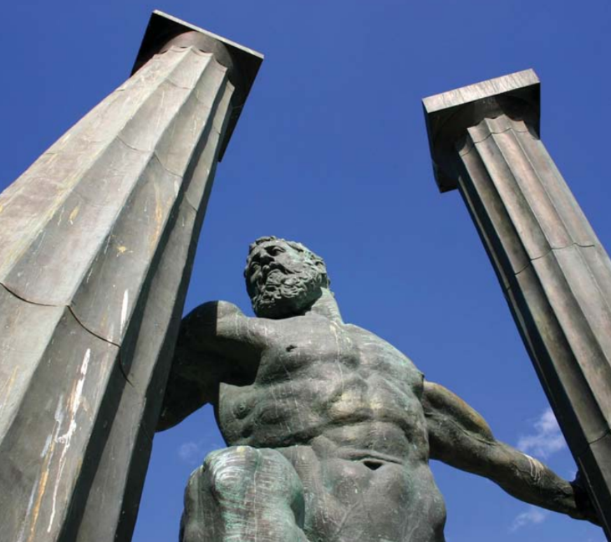 Escultura de Hércules con las columnas del Estrecho de Gibraltar, obra del artista Ginés Serrán Pagán.