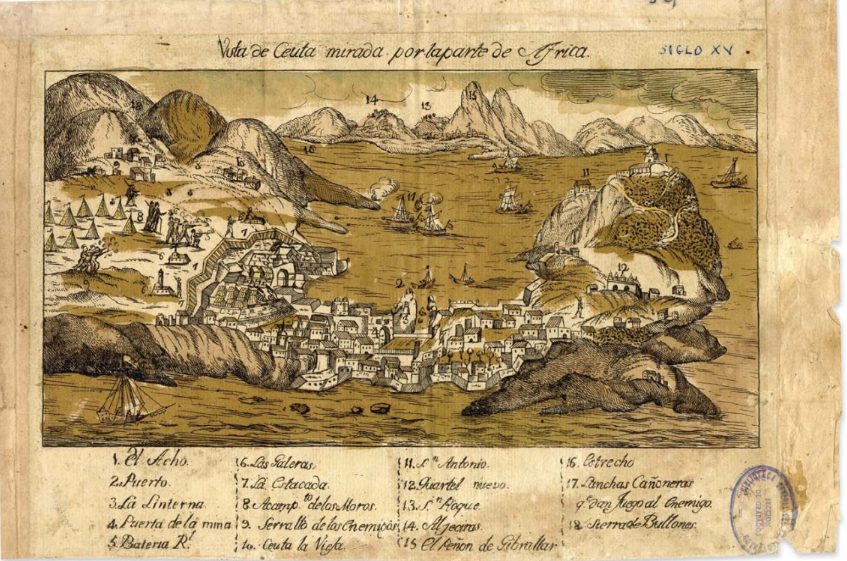 Vista de Ceuta mirada por la parte de África, grabado de finales del siglo XVIII. Archivo General de Ceuta.