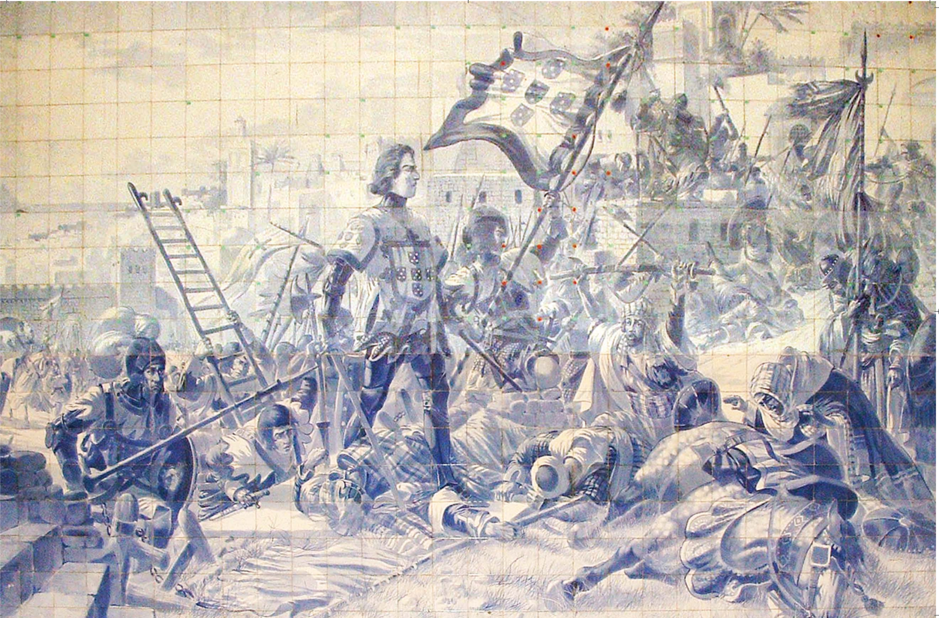 Enrique el Navegante en la conquista de Ceuta. Diseño de Jorge Colaço en la estación de tren de Sao Bento en Oporto.