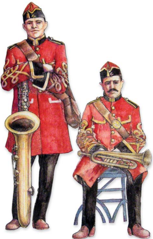 Músicos de la banda de la Legión (1927). Ilustración: José Montes Ramos.
