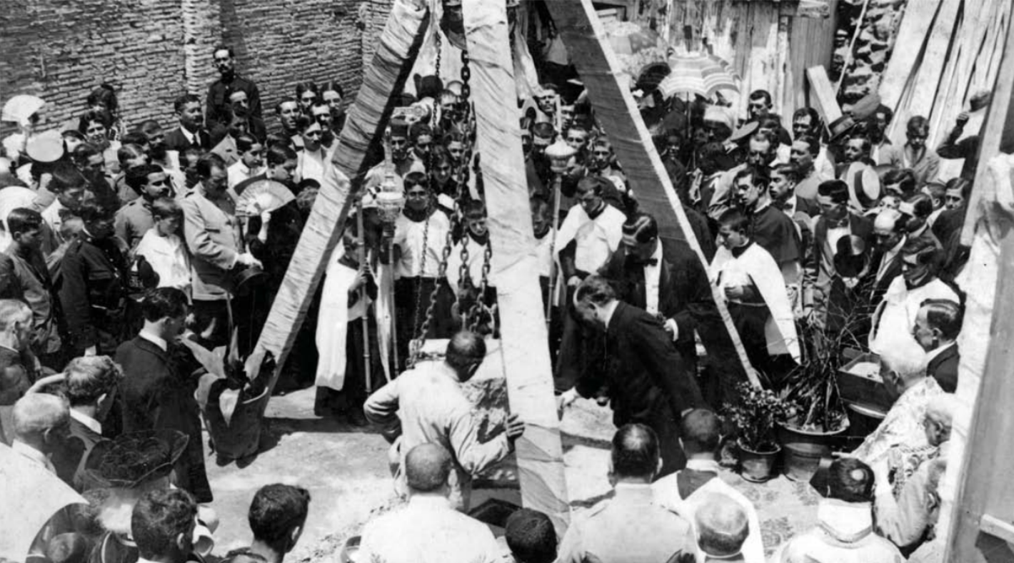 Acto de colocación de la primera piedra del Ayuntamiento de Ceuta en 1914, aunque la obra no finalizará hasta 1927. Archivo General de Ceuta, Fondo Fotográfico.