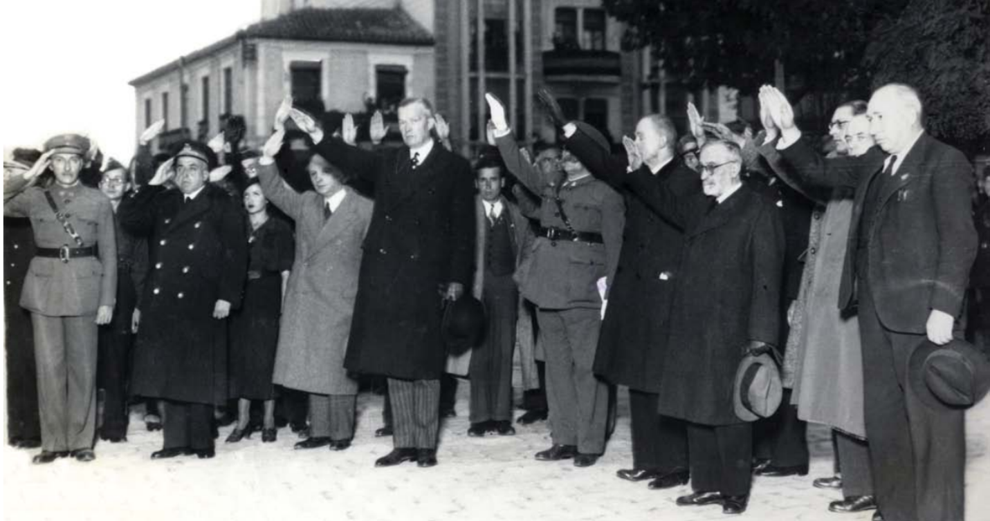 Despedida de los voluntarios de la División Azul en Ceuta el 8 de julio de 1941. Entre ellos se encontraba el alcalde de Ceuta Jacinto Ochoa. Archivo General de Ceuta, Fondo Fotográfico.