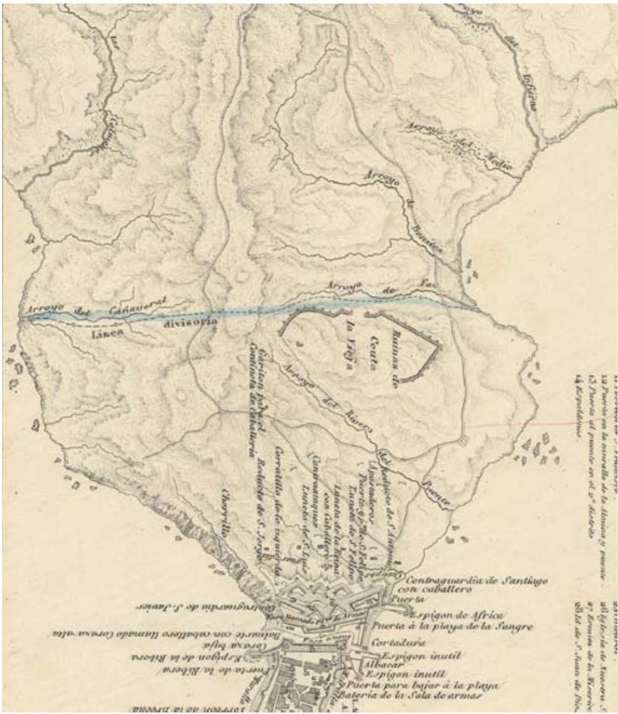 El Campo Exterior. Plan of the town and fortifications of Ceuta in Africa surveyed, 1820. Instituto Cartográfico y Geológico de Cataluña.