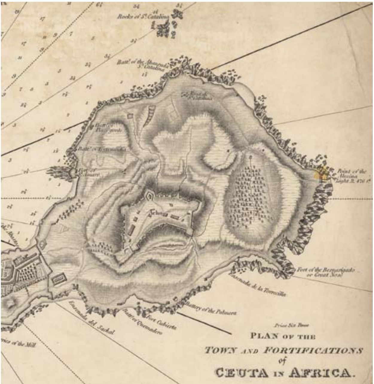 El Hacho. Plan of the town and fortifications of Ceuta in Africa surveyed, 1820. Instituto Cartográfico y Geológico de Cataluña.