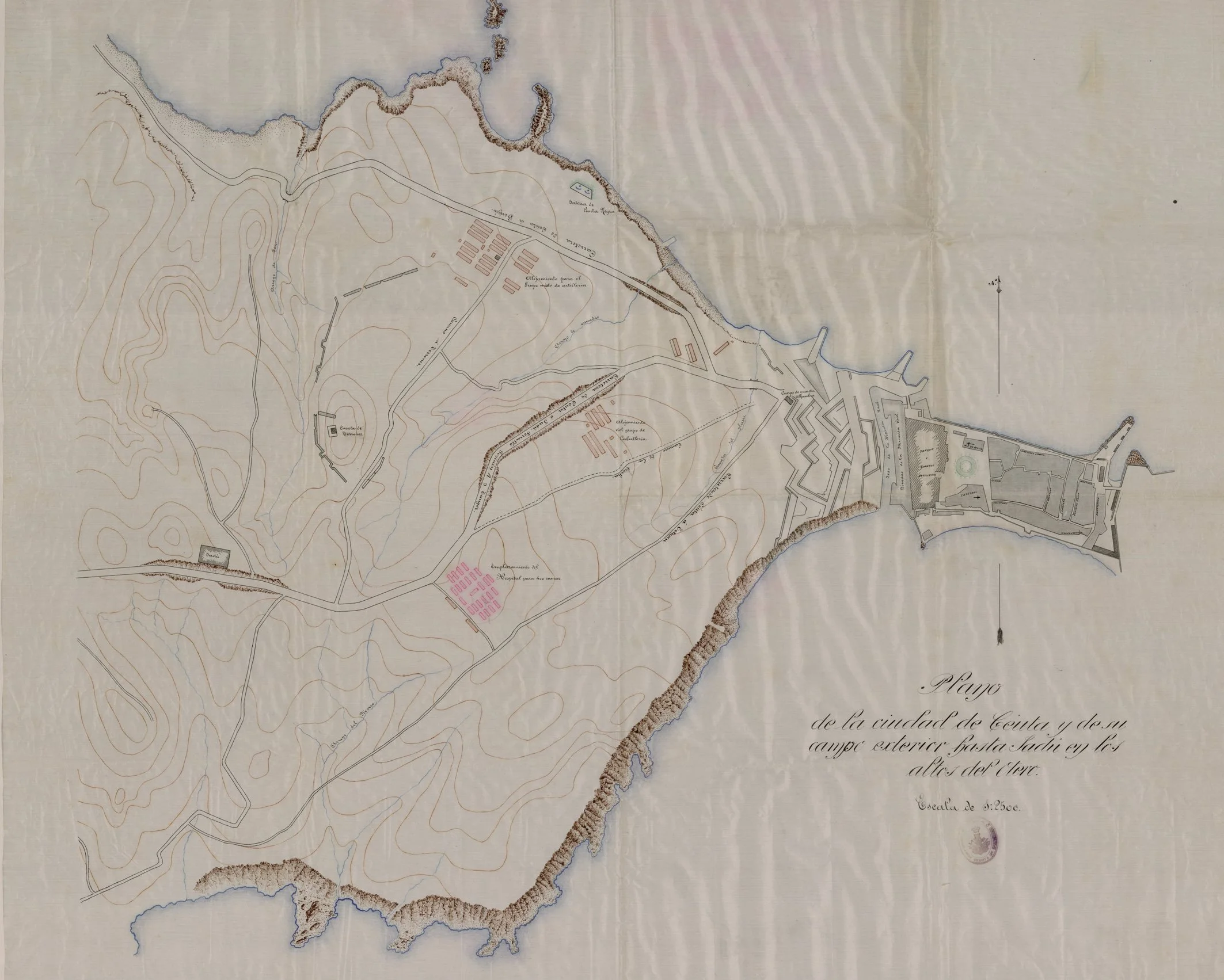 No había ninguna propuesta para la Ciudad Vieja, que se señala con una mancha denominada «ciudad» ni para la Almina, que quedaba marcada con otra mancha independiente en la zona norte. La zona sur de la Almina, de escarpada orografía, al igual que el monte Hacho, aparece marcada sólo por su orografía y por salpicaduras de puntos negros de naturaleza militar correspondientes a las baterías.