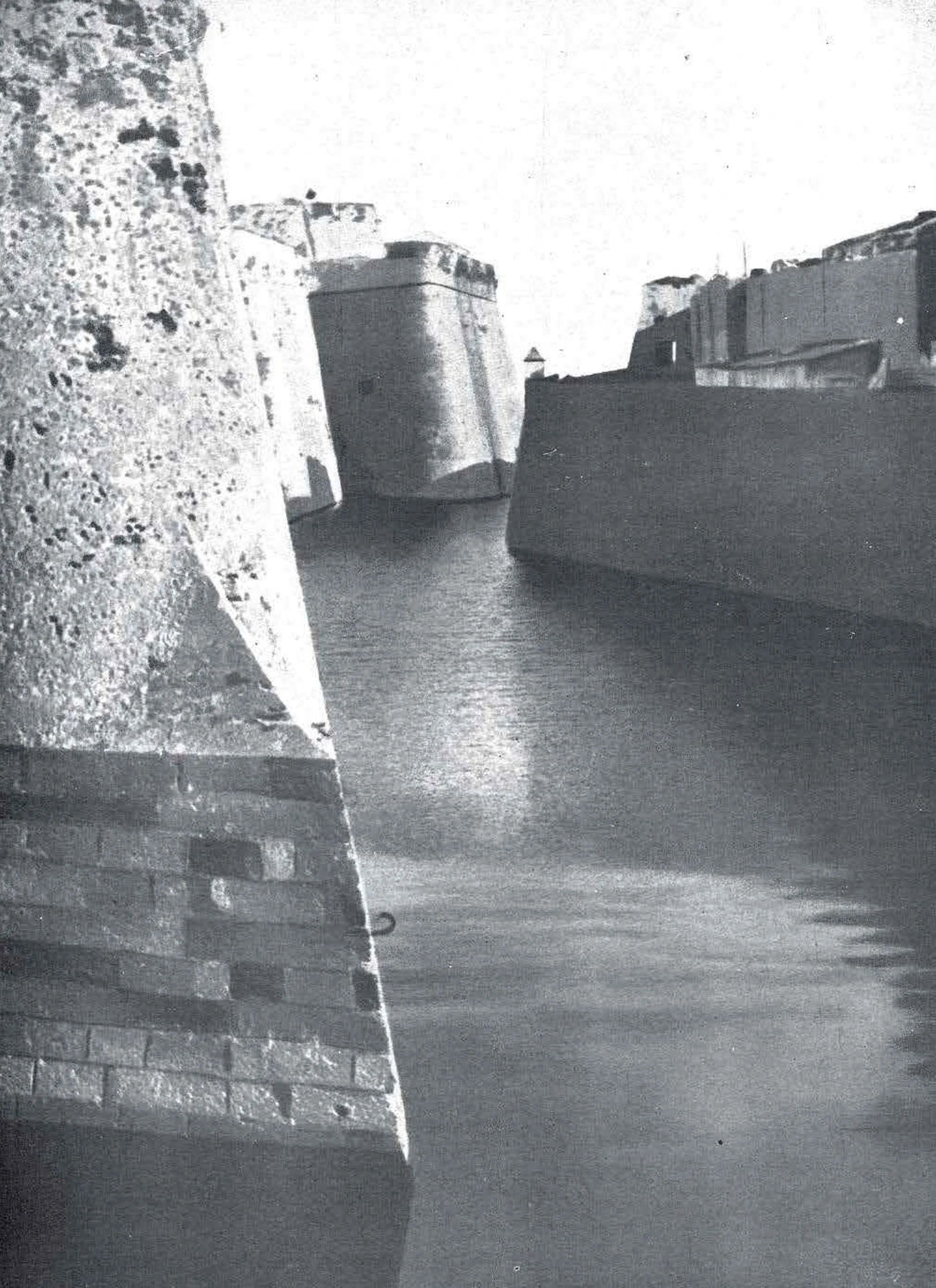 Foso de la Puerta del Campo de Ceuta. Fotografía de Sánchez Ramírez, África, 1 de julio de 1934, p. 8 (arriba). Baluarte de la entrada al Campo, África, 1 de octubre de 1932, p. 186 (abajo).