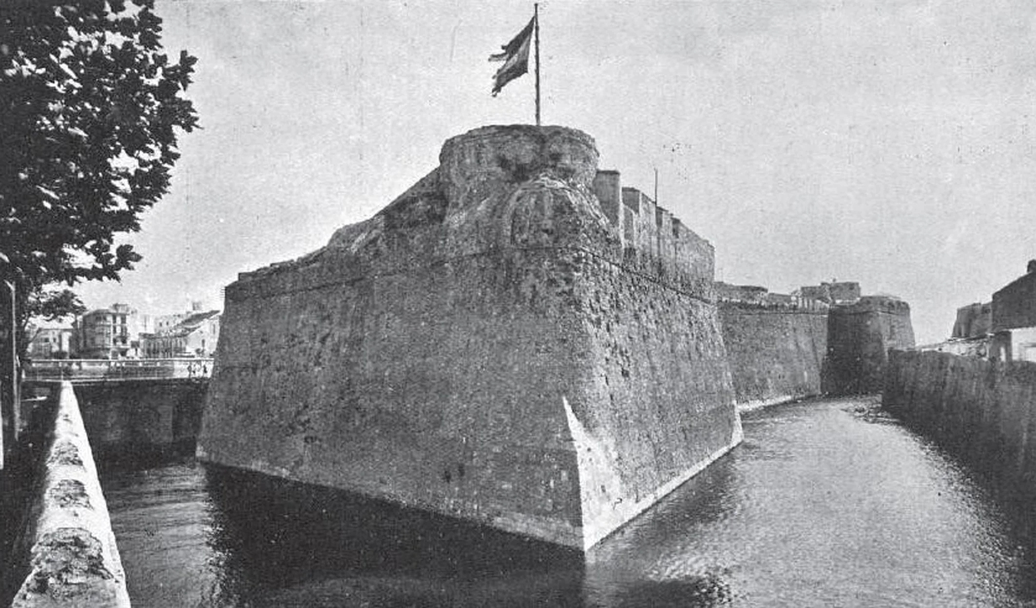 El jardín, la plaza y el baluarte de San Sebastián, con el puente de la Almina. Fondo Calatayud. Archivo General de Ceuta.