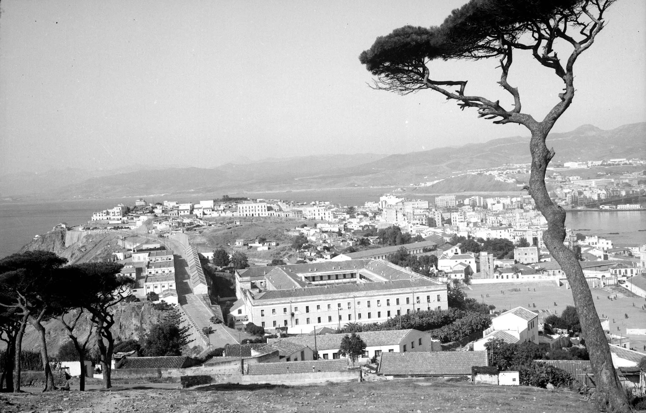 Vista de Ceuta desde el Hacho. En primer término, el cuartel de las Heras. Fondo Calatayud. Archivo General de Ceuta.