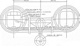 Túnel de cruce del Estrecho de Gibraltar del ingeniero Pedro Jevenois, 1927 (arriba). «Propuesta de puente colgante. Un puente enlazará las orillas. Postal simbólica de los Centros Comerciales Hispano Marroquíes». África, 1 de julio de 1933, p. 134. Túnel del ingeniero Fernando Gallego Herrera, basado en su «Sistema de cimientos de gravedad invertida de flotación», patentado en 1928 con el que pretendía unir el Estrecho de Gibraltar (abajo).